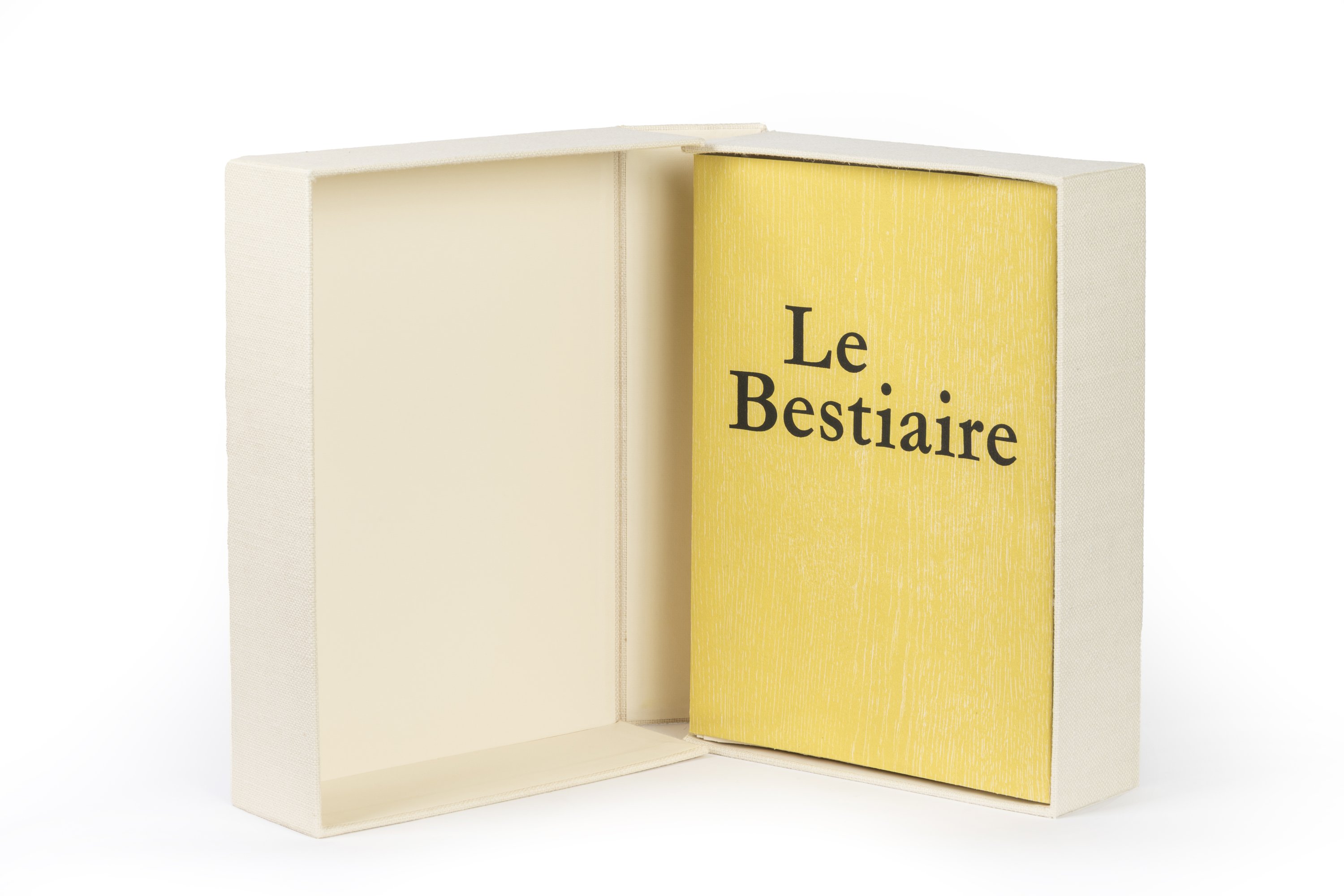 In-folio (390 x 288 mm). En feuilles. Couvertures jaunes, imprimées et rempliées. Emboîtage de l'éditeur en toile blanche. Tirage à 230 exemplaires seulement, tous sur papier d'Auvergne. Couvertures et 33 bois originaux en couleur pleine page, dont 4 sur double page. Exemplaire n°39, avec une suite des 33 bois en couleurs dont quatre sur double page et la décomposition des couleurs d'une planche sur pur chiffon Guano.