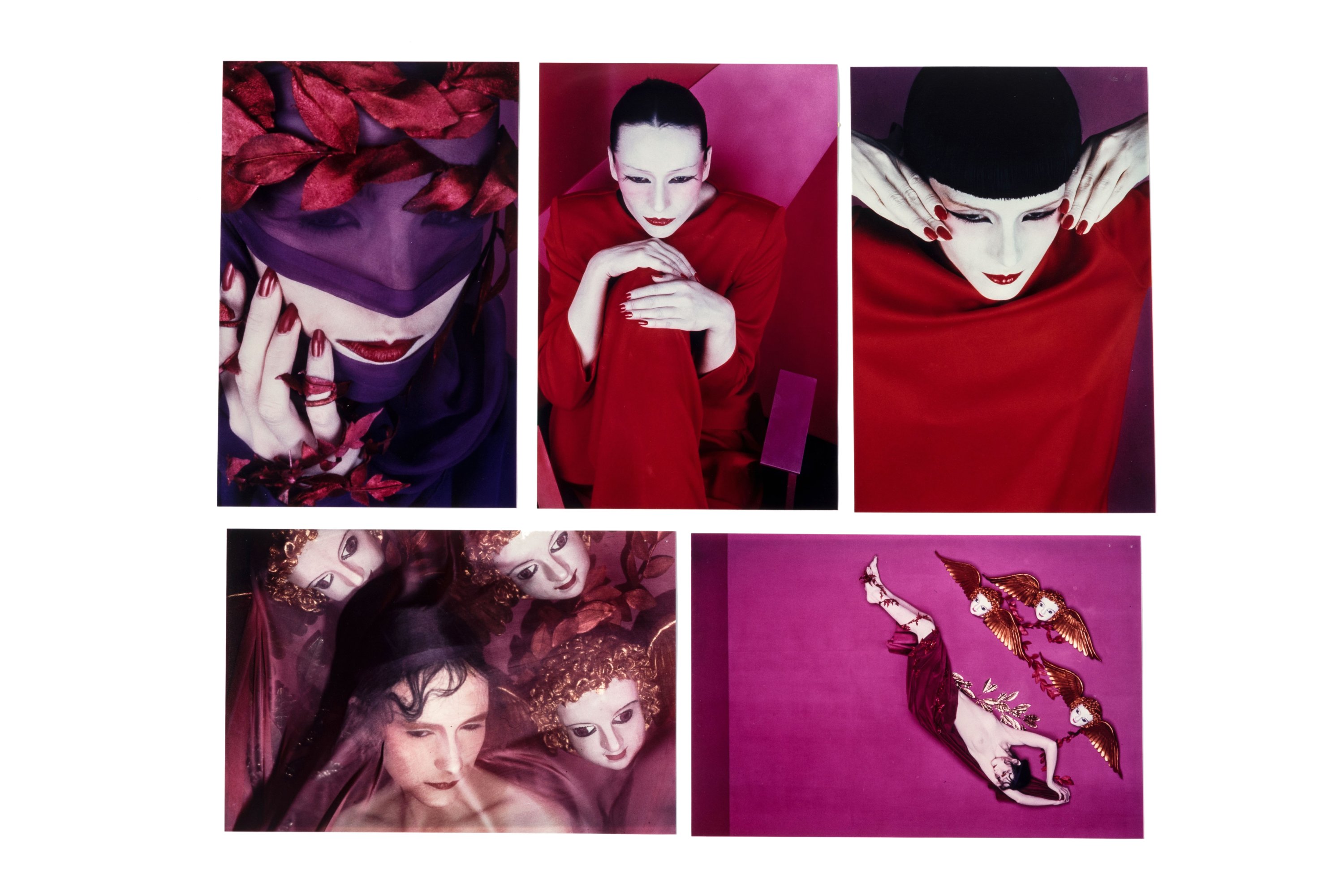Monsieur Lutens nous demande de préciser que ces tirages reproduits en série constituent des documents de travail de l’époque, réalisés pour la promotion de produits cosmétiques. Ils ne correspondent pas à la vision de Serge Lutens de son œuvre photographique.