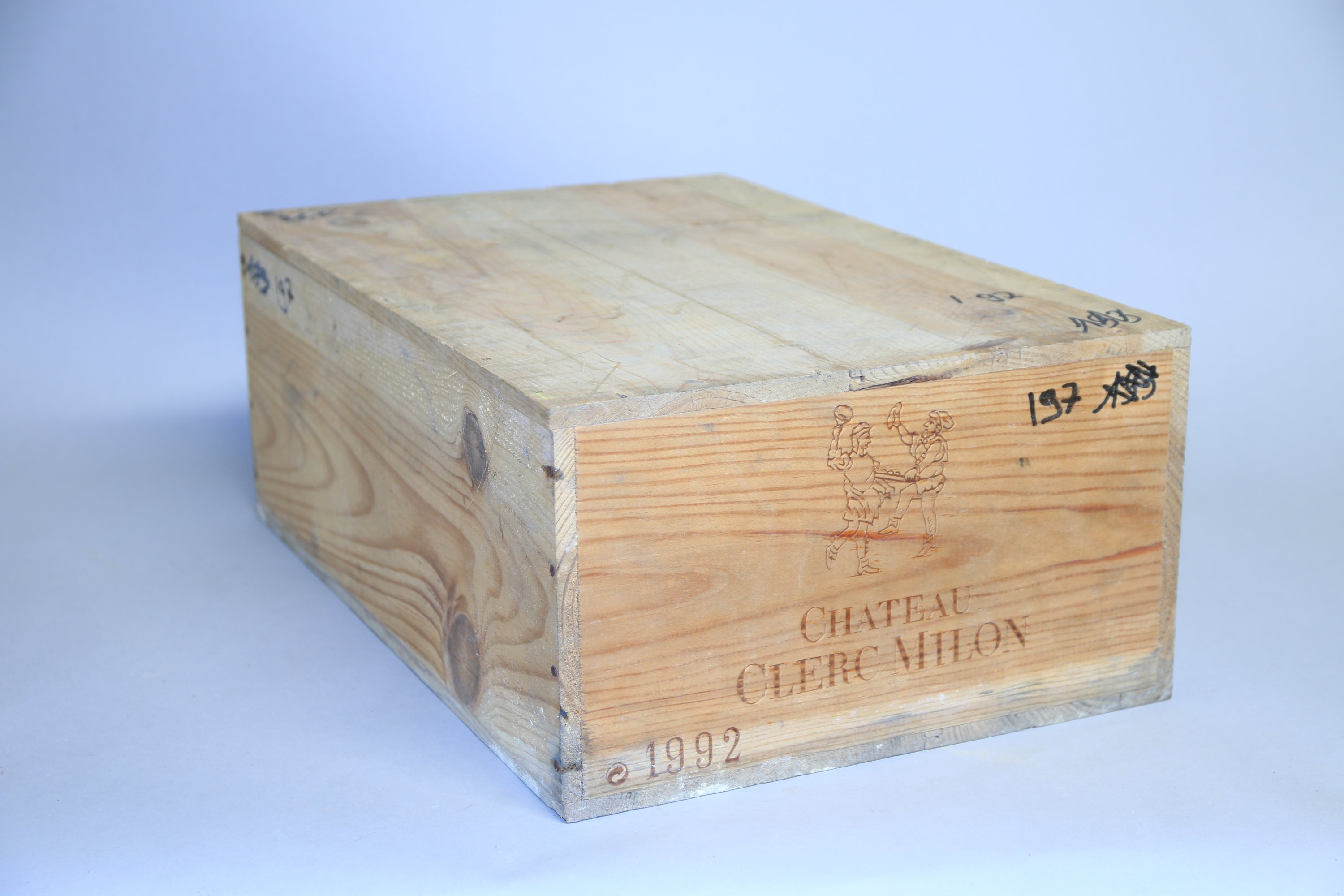 Pauillac, Château Clerc Milon, 5ème Grand Cru classé, 1992, 12 bouteilles. Caisse en bois d'origine refermée (numérotation au feutre).