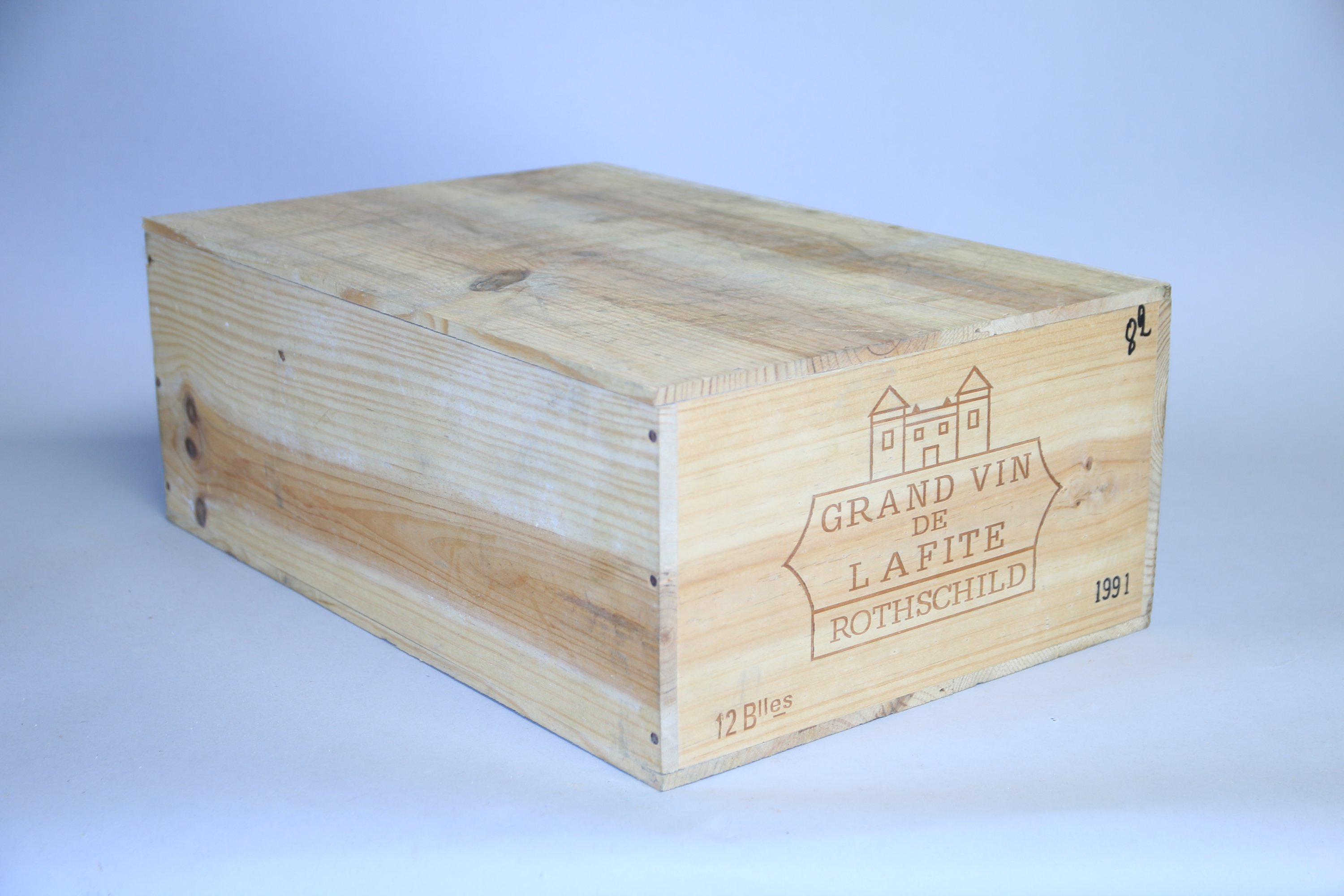 Pauillac, Château Lafite-Rothschild, 1er Grand Cru classé, 1991, 12 bouteilles. Caisse en bois d'origine (numérotation au feutre).
