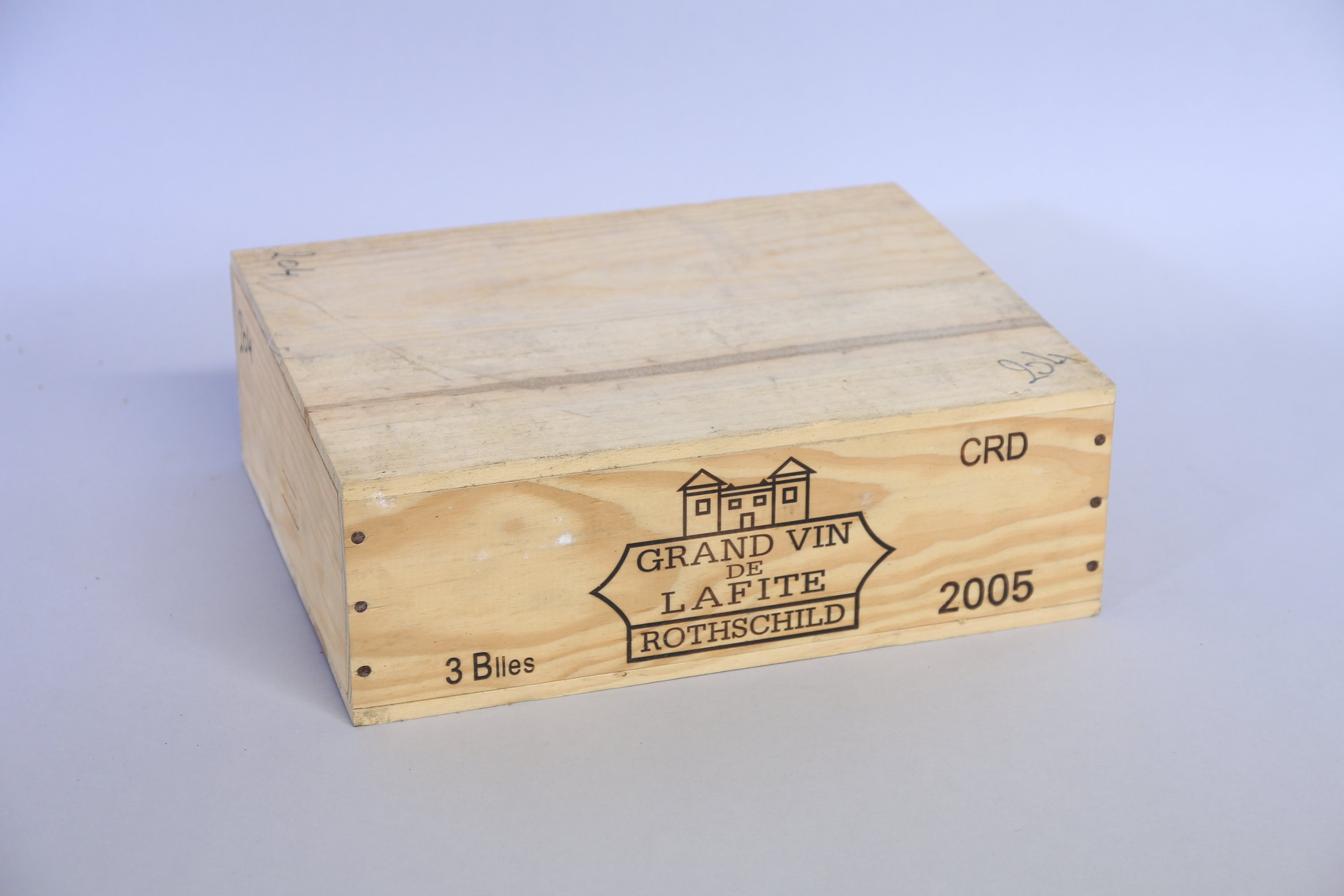 Pauillac, Château Lafite-Rothschild, 1er Grand Cru classé, 2005, 3 bouteilles. Caisse en bois d'origine (numérotation au feutre).