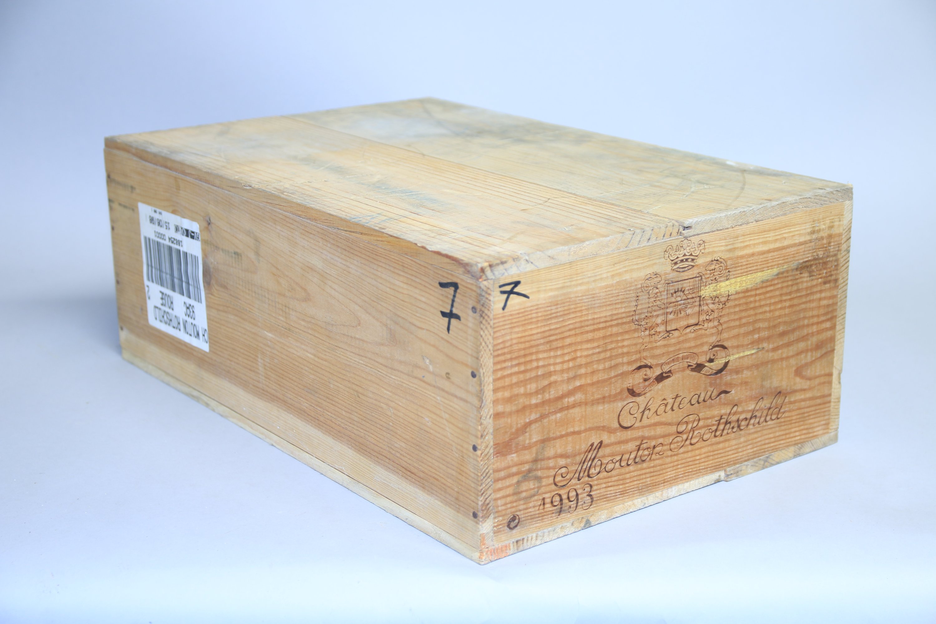 Pauillac, Château Mouton Rothschild, 1er Grand Cru classé, 1993, 12 bouteilles. Caisse en bois d'origine (numérotation au feutre).