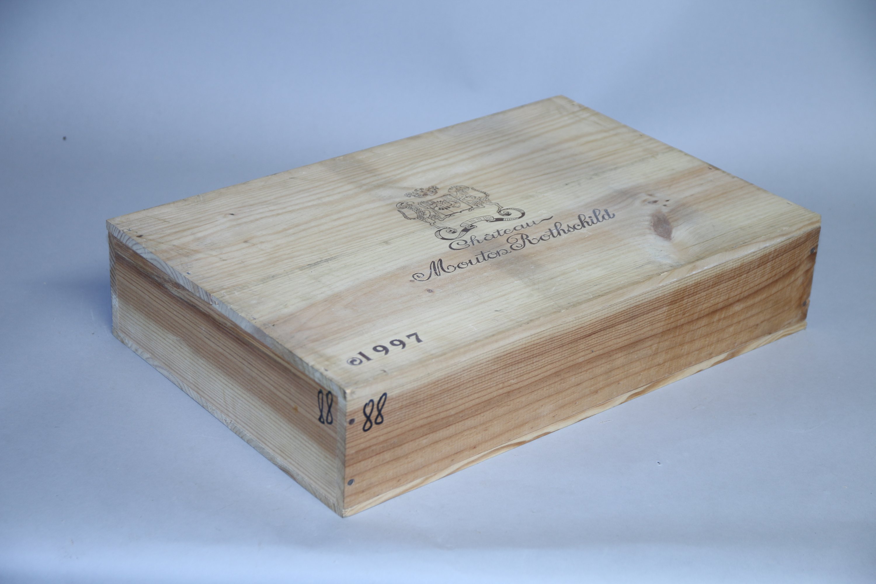 Pauillac, Château Mouton Rothschild, 1er Grand Cru classé, 1997, 6 bouteilles. Caisse en bois d'origine (numérotation au feutre).