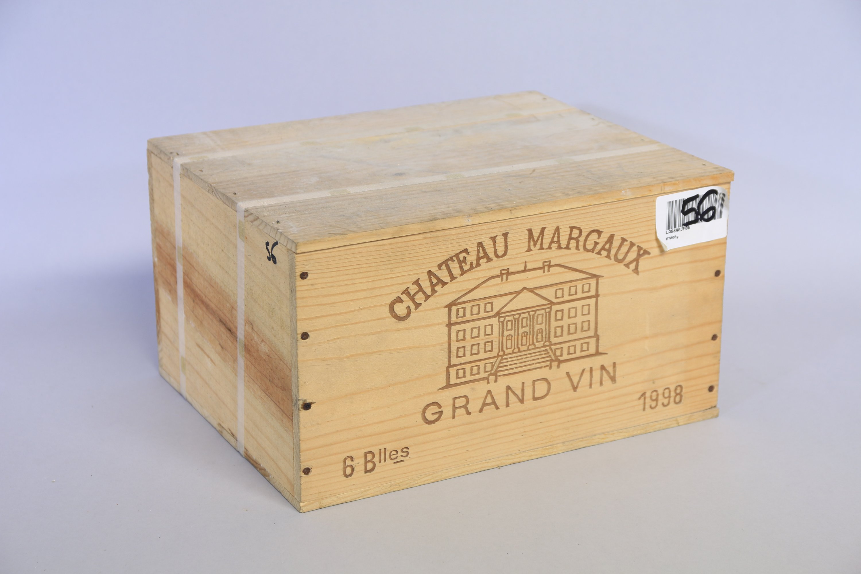 Margaux, Château Margaux, 1er Grand Cru classé, 1998, 6 bouteilles. Caisse en bois d'origine cerclée (numérotation au feutre).
