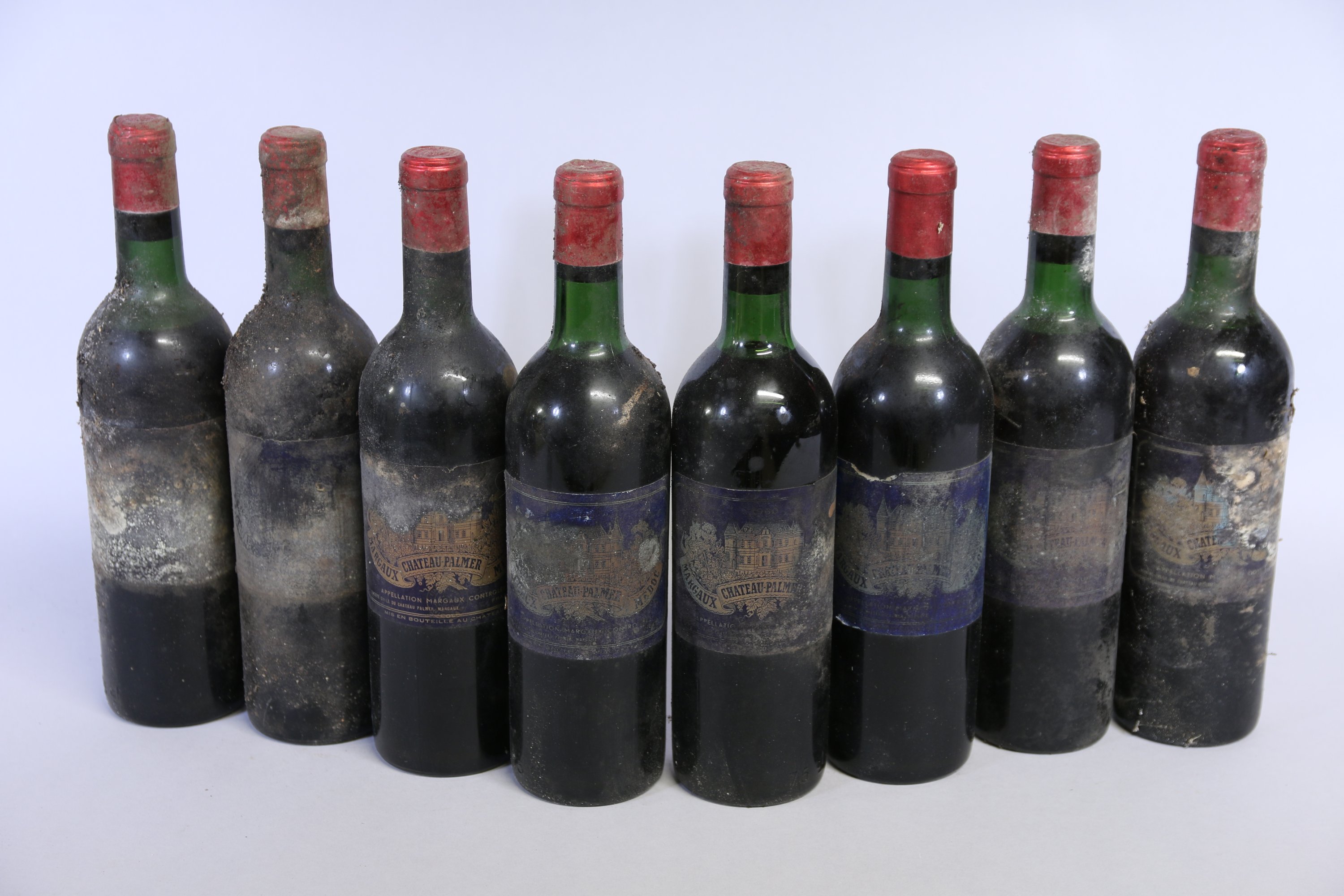 Margaux, Château Palmer, 3ème Grand Cru classé, 8 bouteilles : 2 x 1960 et 6 x millésimes non identifiés.
