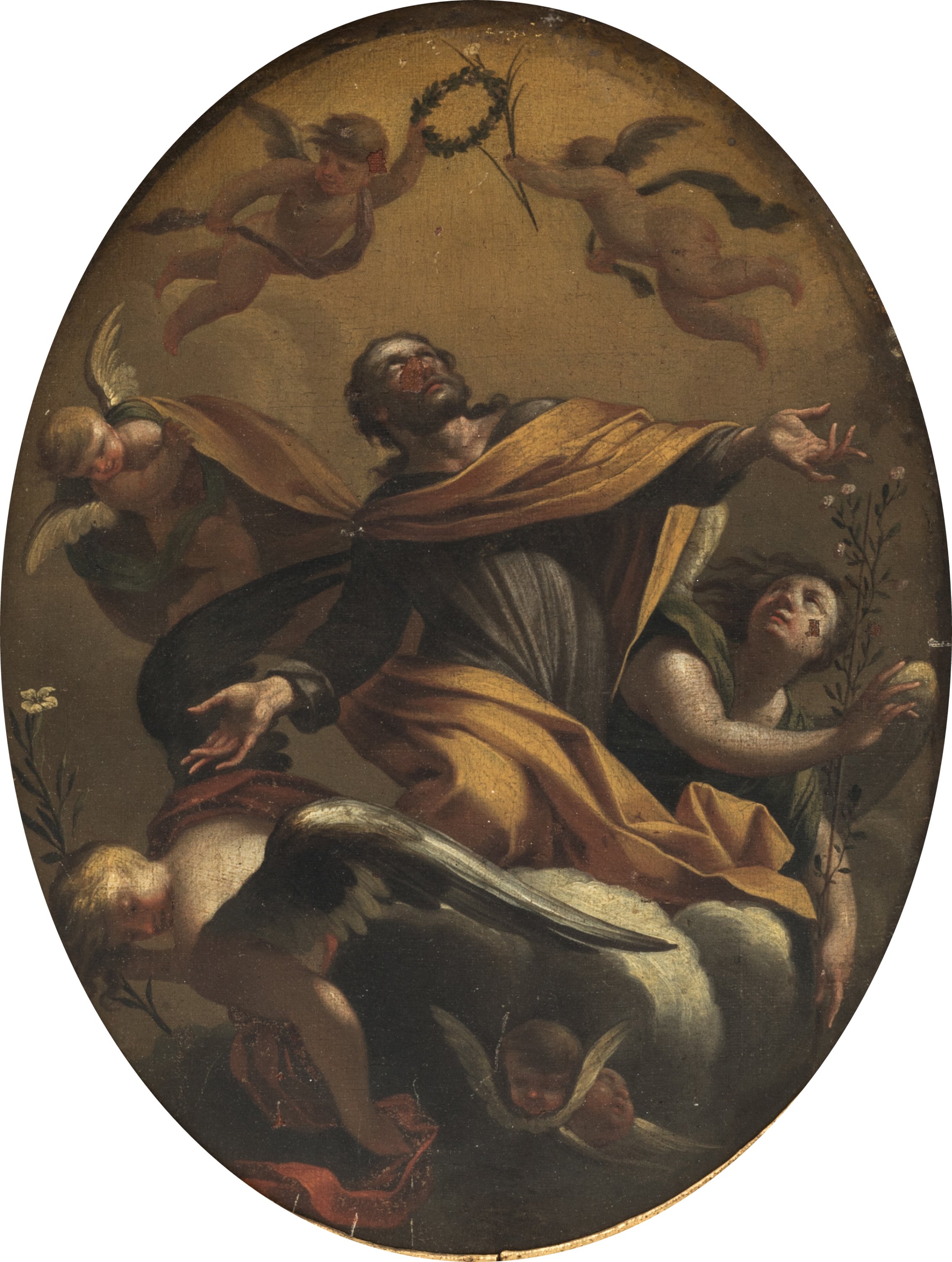 French School, 18th century. The Apotheosis of Saint Joseph. After an engraving by Simon Vouet. Oil on canvas mounted on wood.