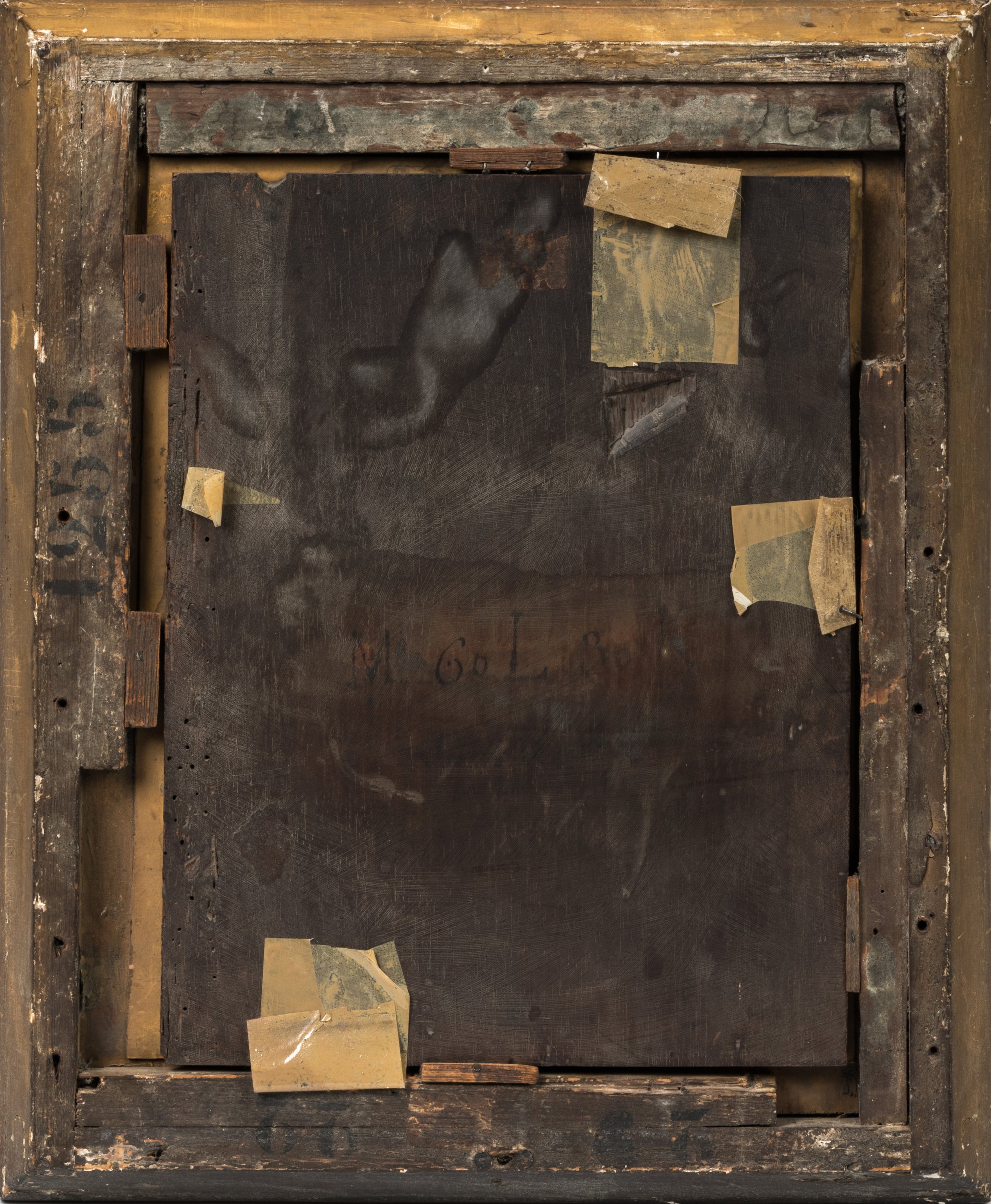 Inscription au verso "M G0 L Bo K / s**** " sur le panneau et numéro 1255 inscrit sur le cadre.