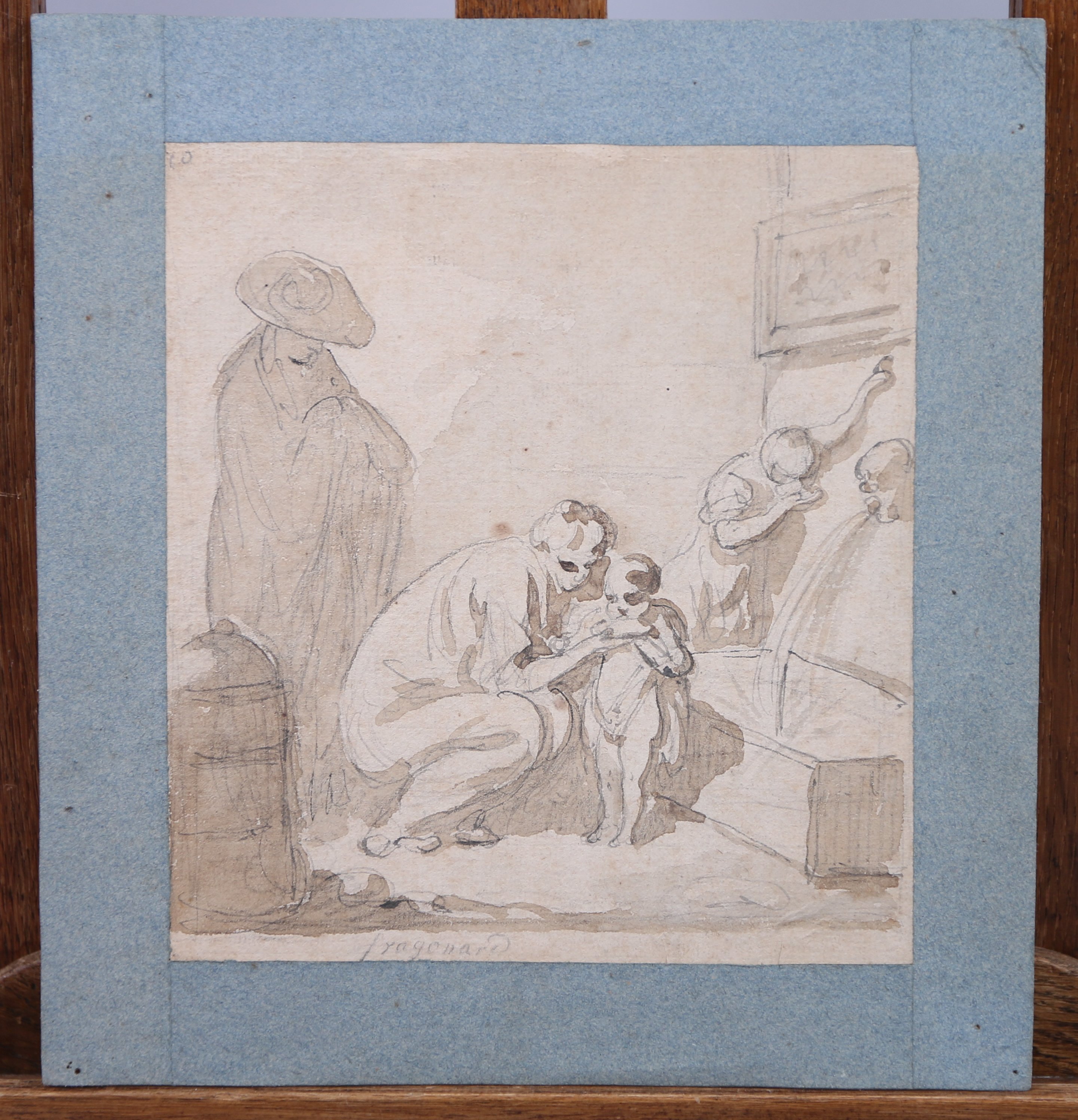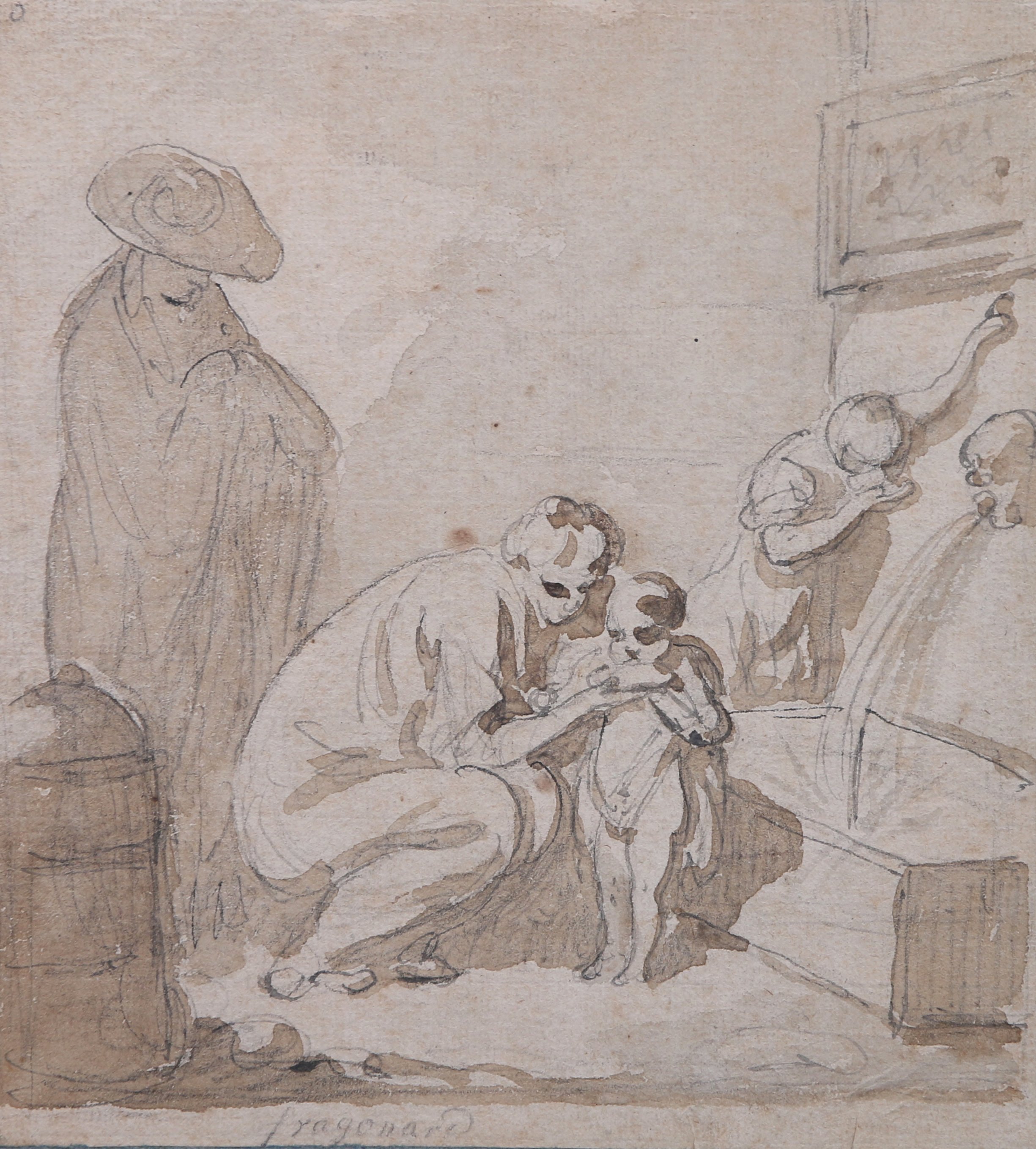 Dessin probablement doublé. Annoté « Fragonard » en bas à gauche.