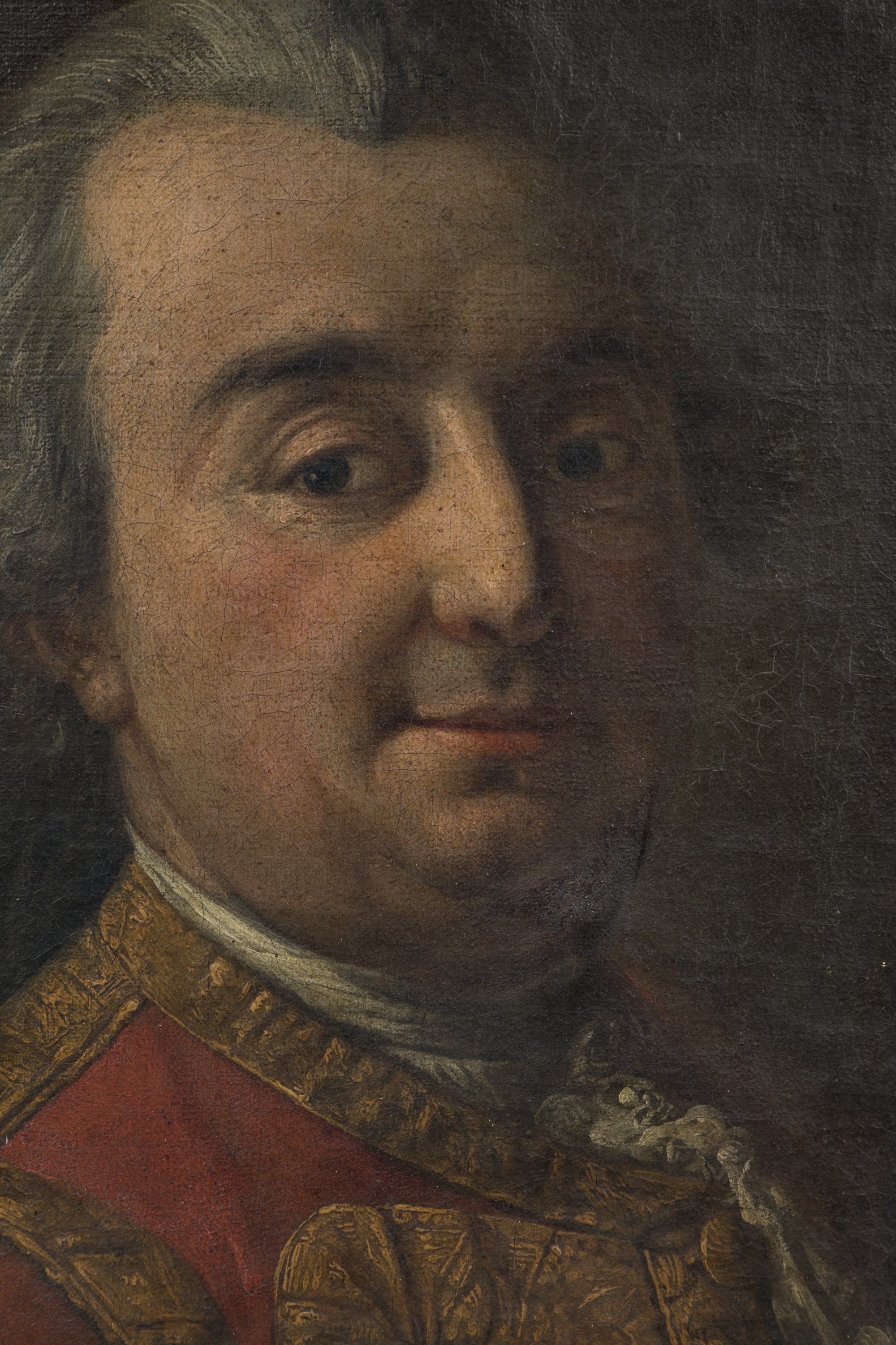A ca. 1770 portrait of a man in a red jacket. Oil on canvas. French School.