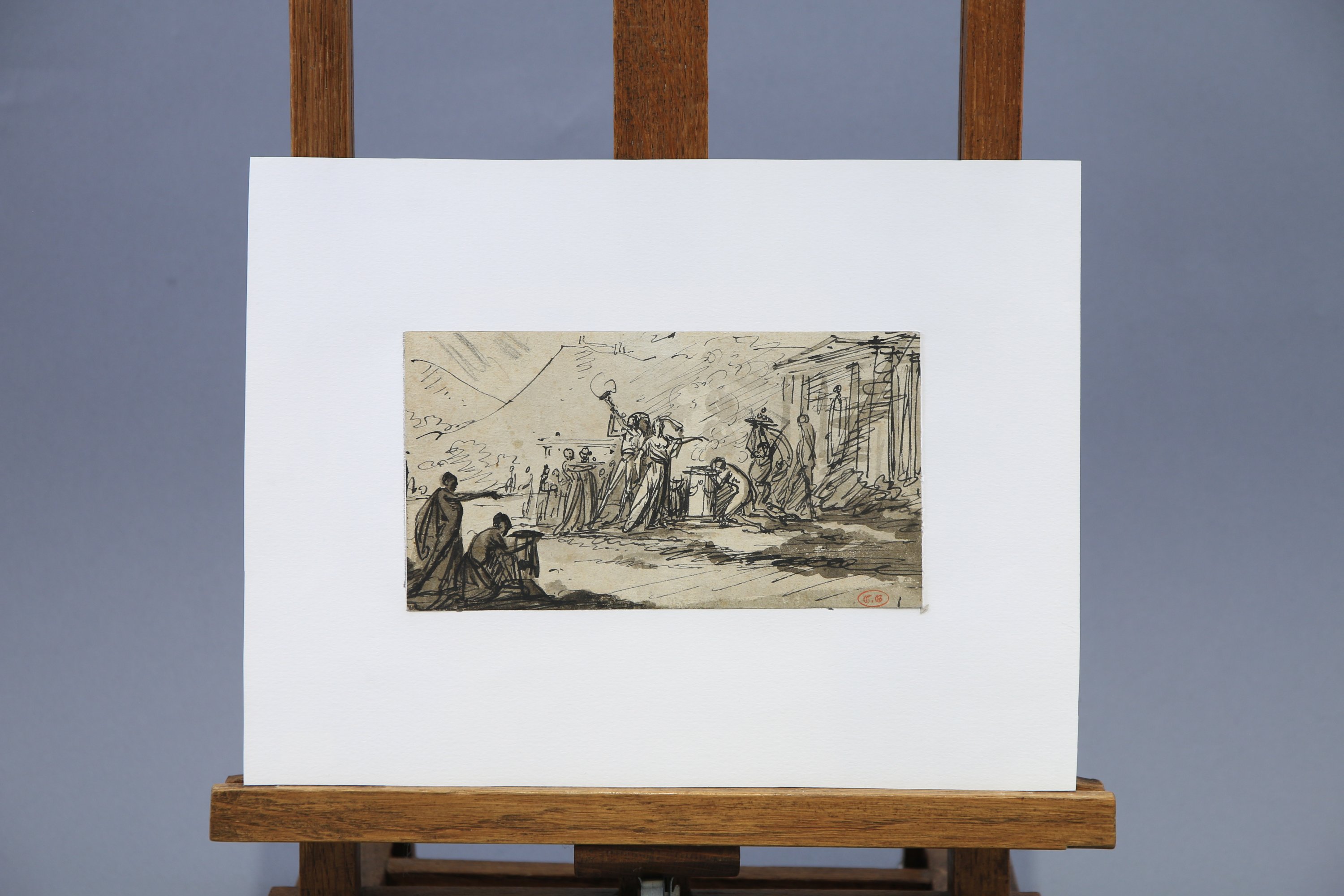 Plume et encre de Chine, lavis brun.