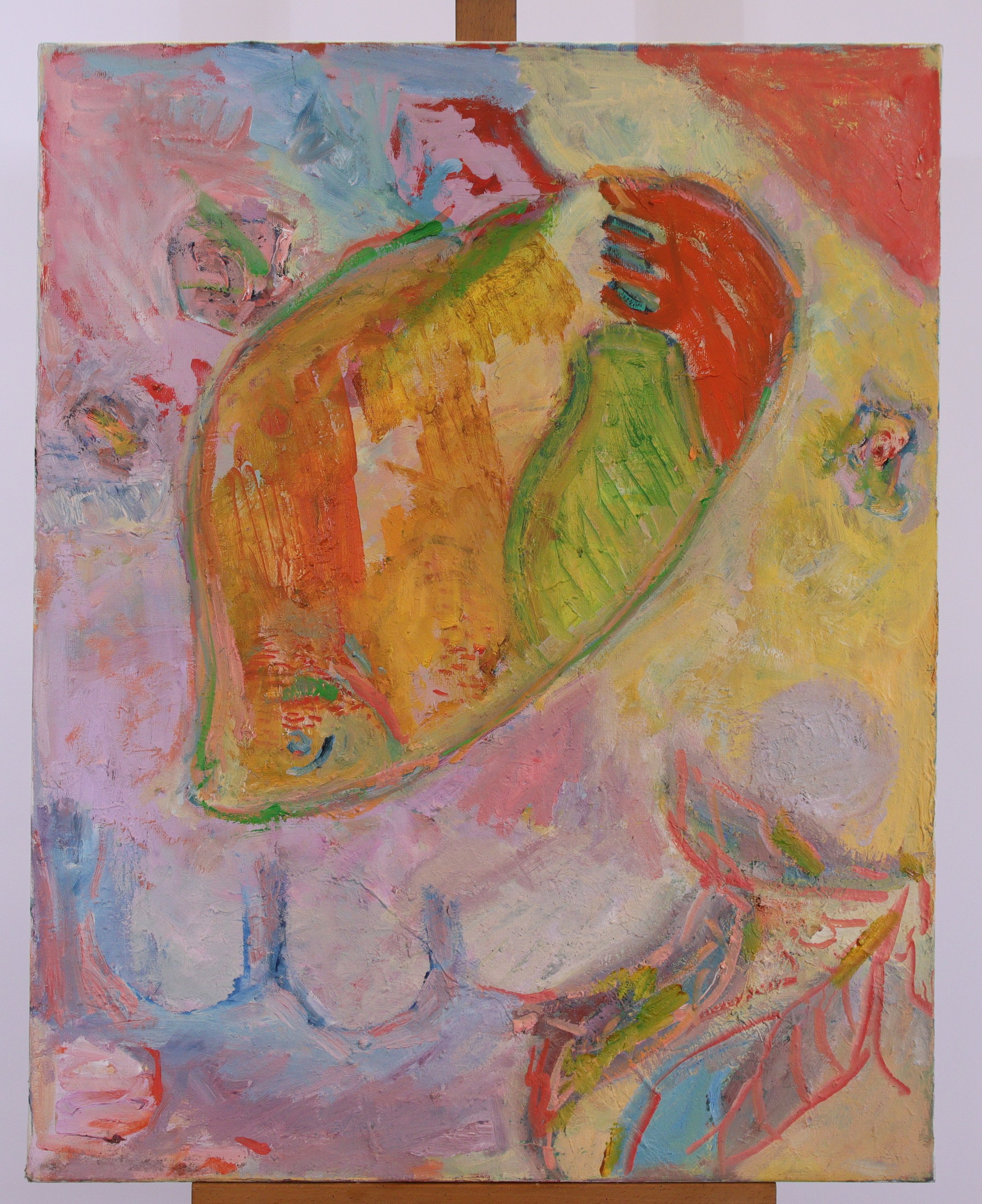 - Ecole contemporaine, Composition, Toile. Non signée. Haut. 100 Larg. 73 cm. (accidents, dont déchirures en bas à gauche). Sans cadre.