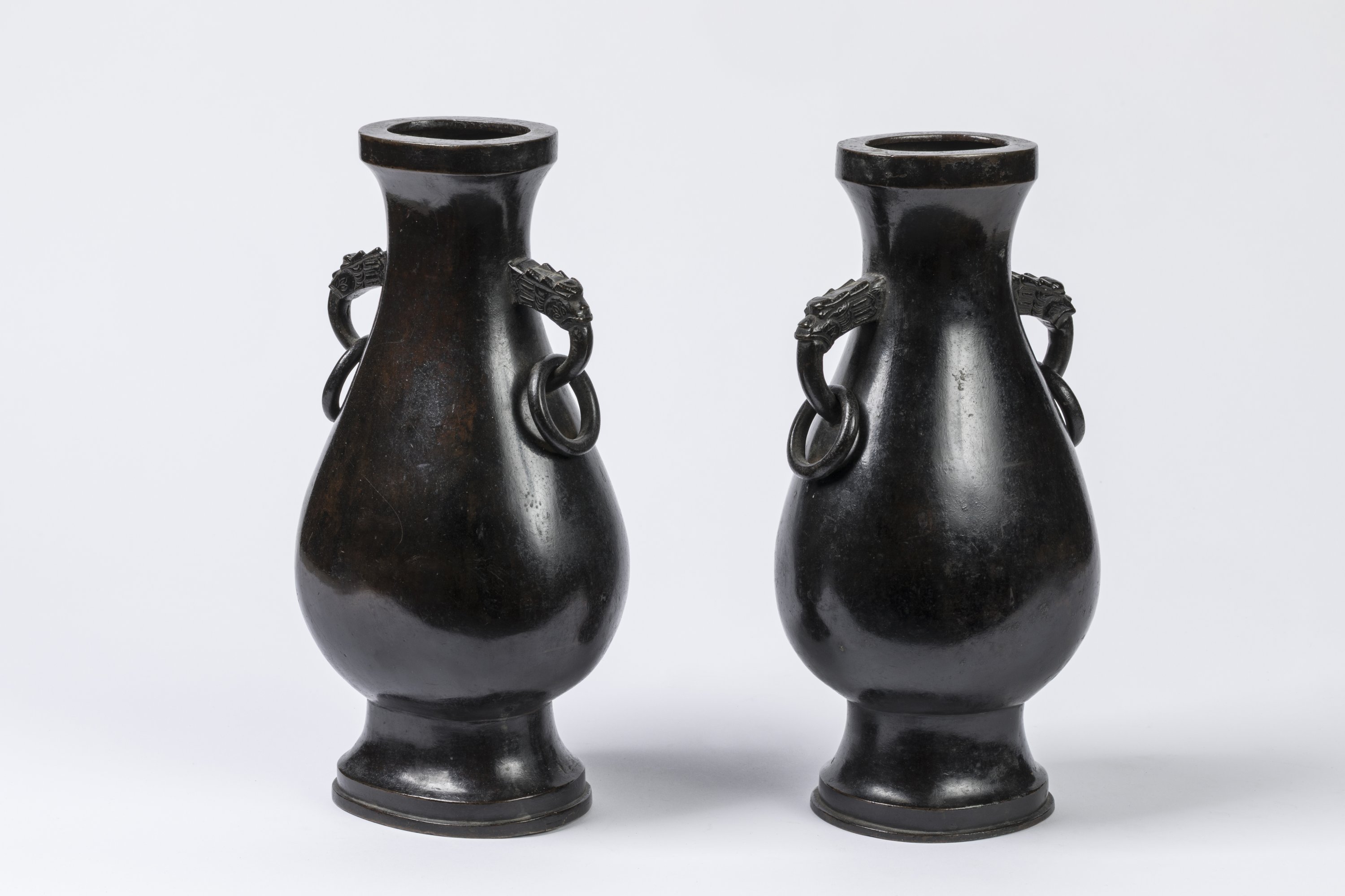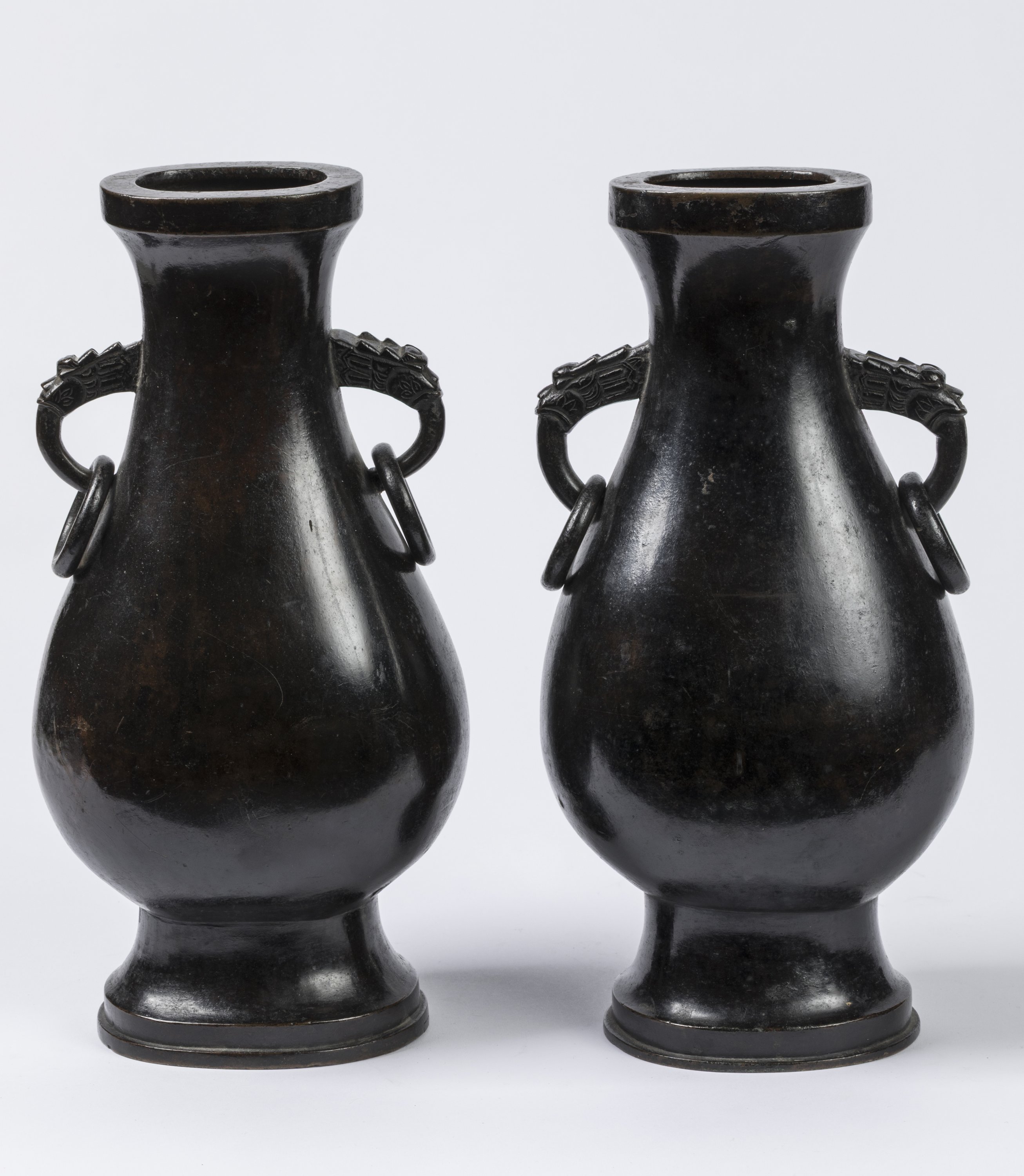 A Chinese pair of bronze baluster vases. Ming Dynasty, 17th century.