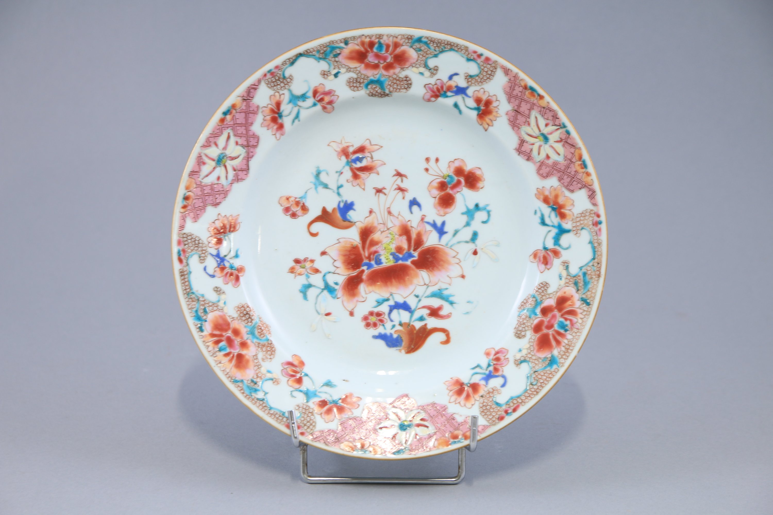 A décor d'un bouquet de fleurs sur fond blanc, l'aile à décor de fleurs sur fond rose réticulé.