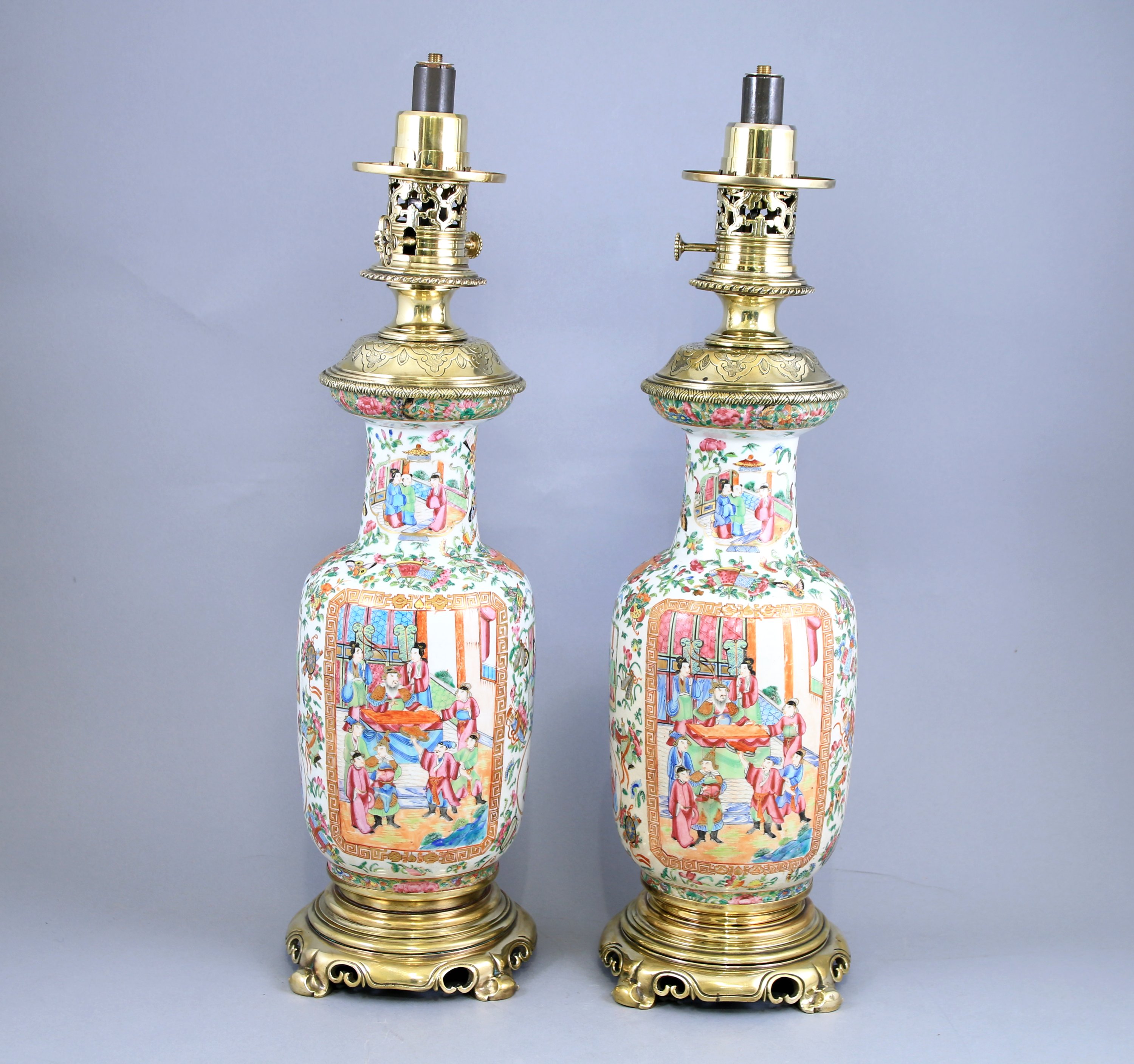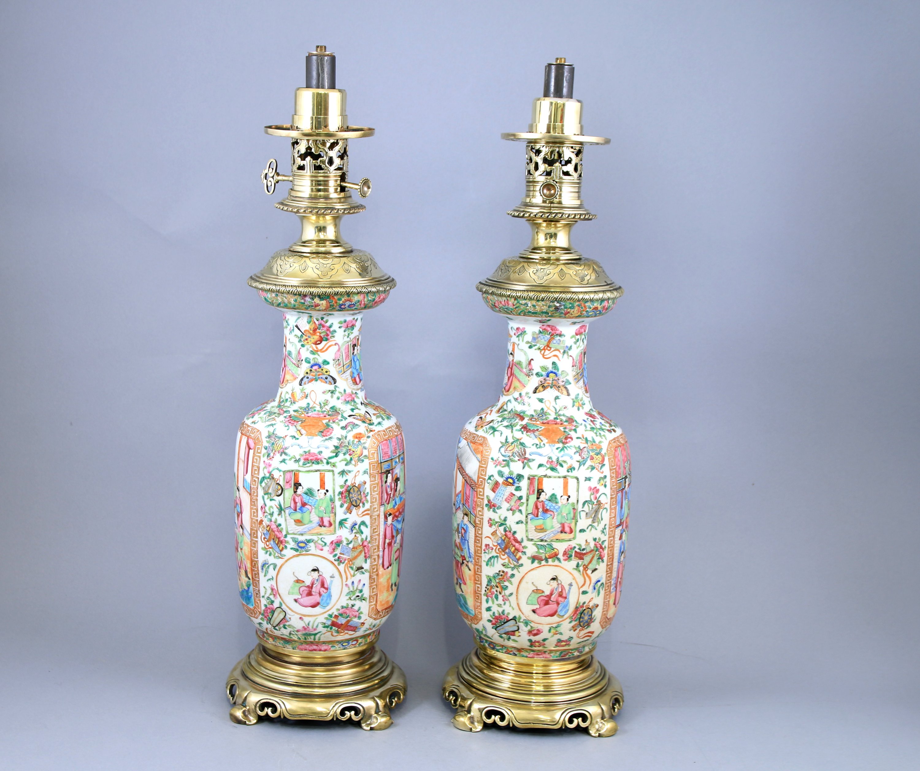 Deux cartouches à décor de scène de palais dans un entourage de végétaux et instruments de lettrés.