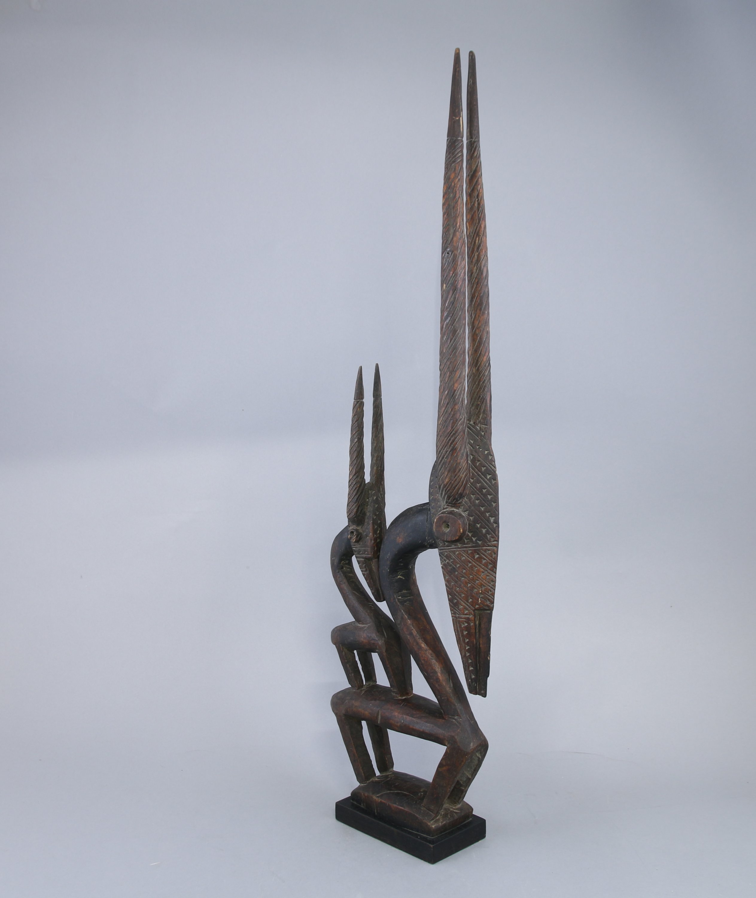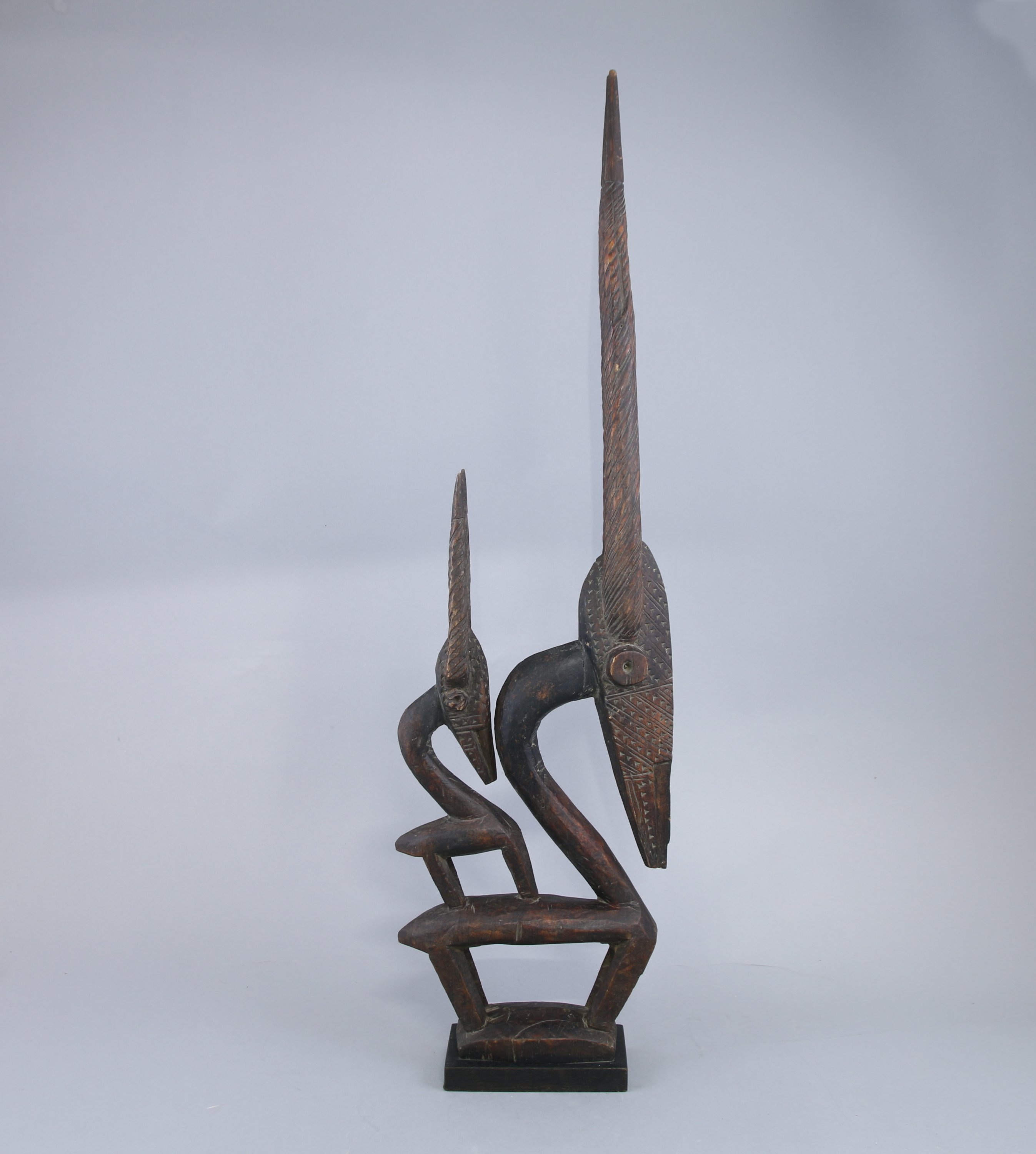 Masque cimier zoomorphe « Tyi Wara » représentant une antilope surmontée de son petit