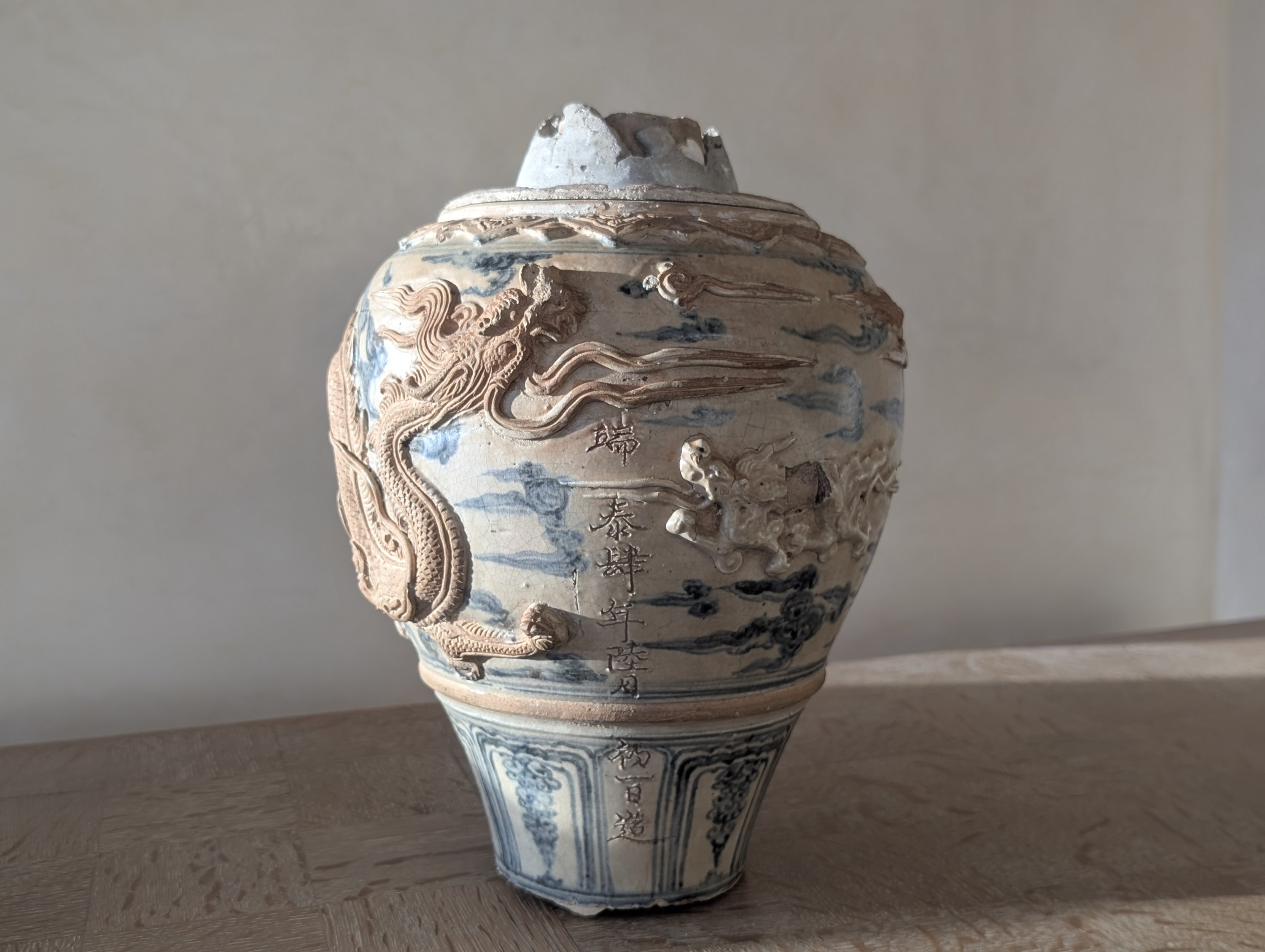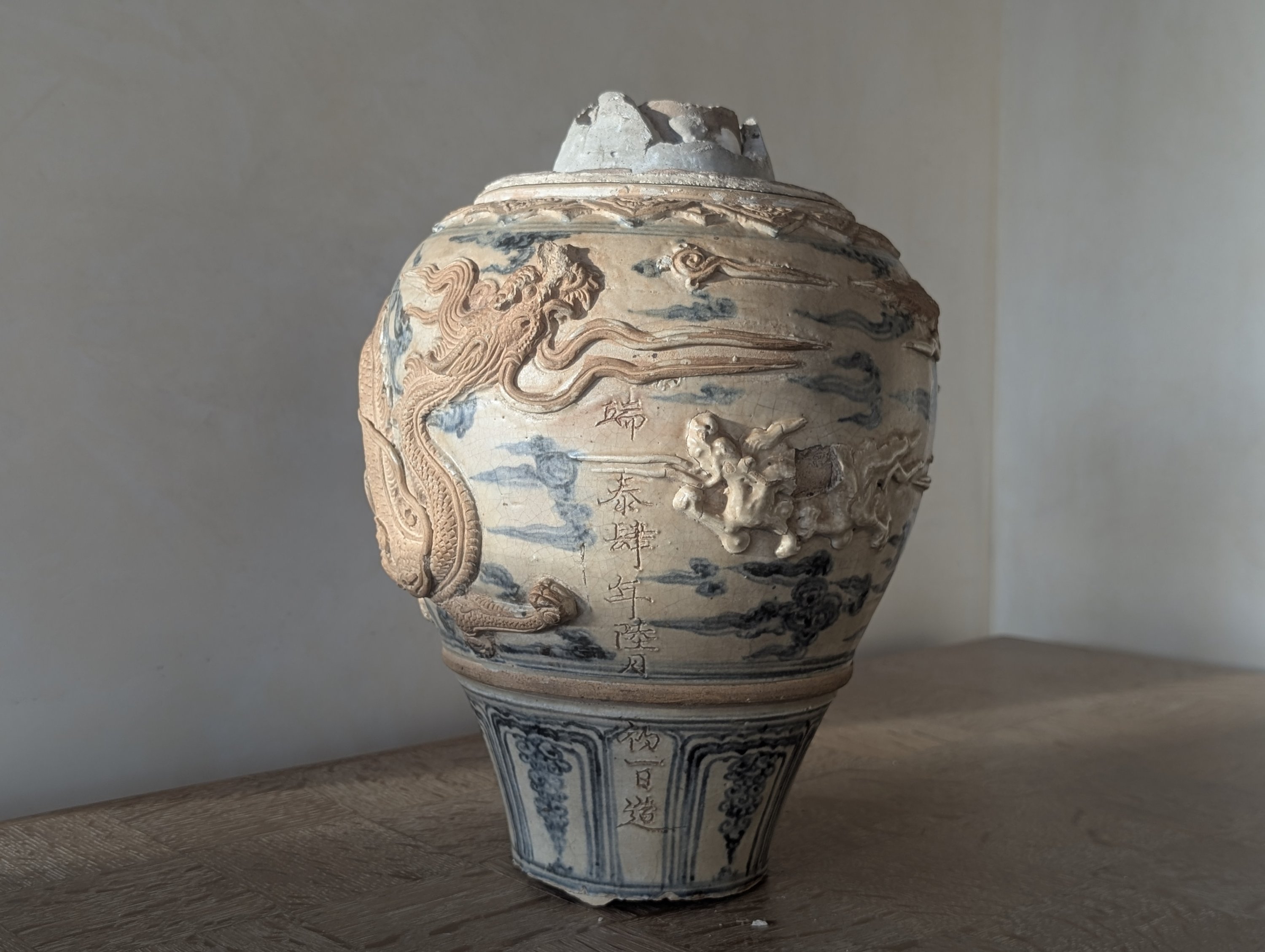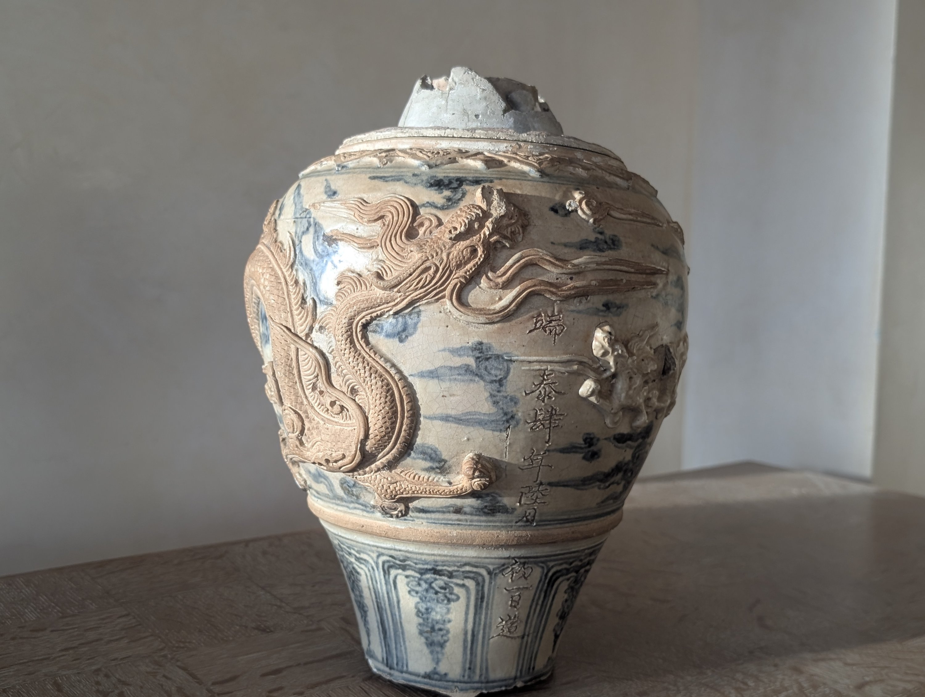 Bibliographie : Candélabre entier avec la même inscription reproduit dans John Stevenson et John Guy, Vietnamese Ceramics. A seperate Tradition, Art Media Resources with Avery Press, 1997, N°390, p.376