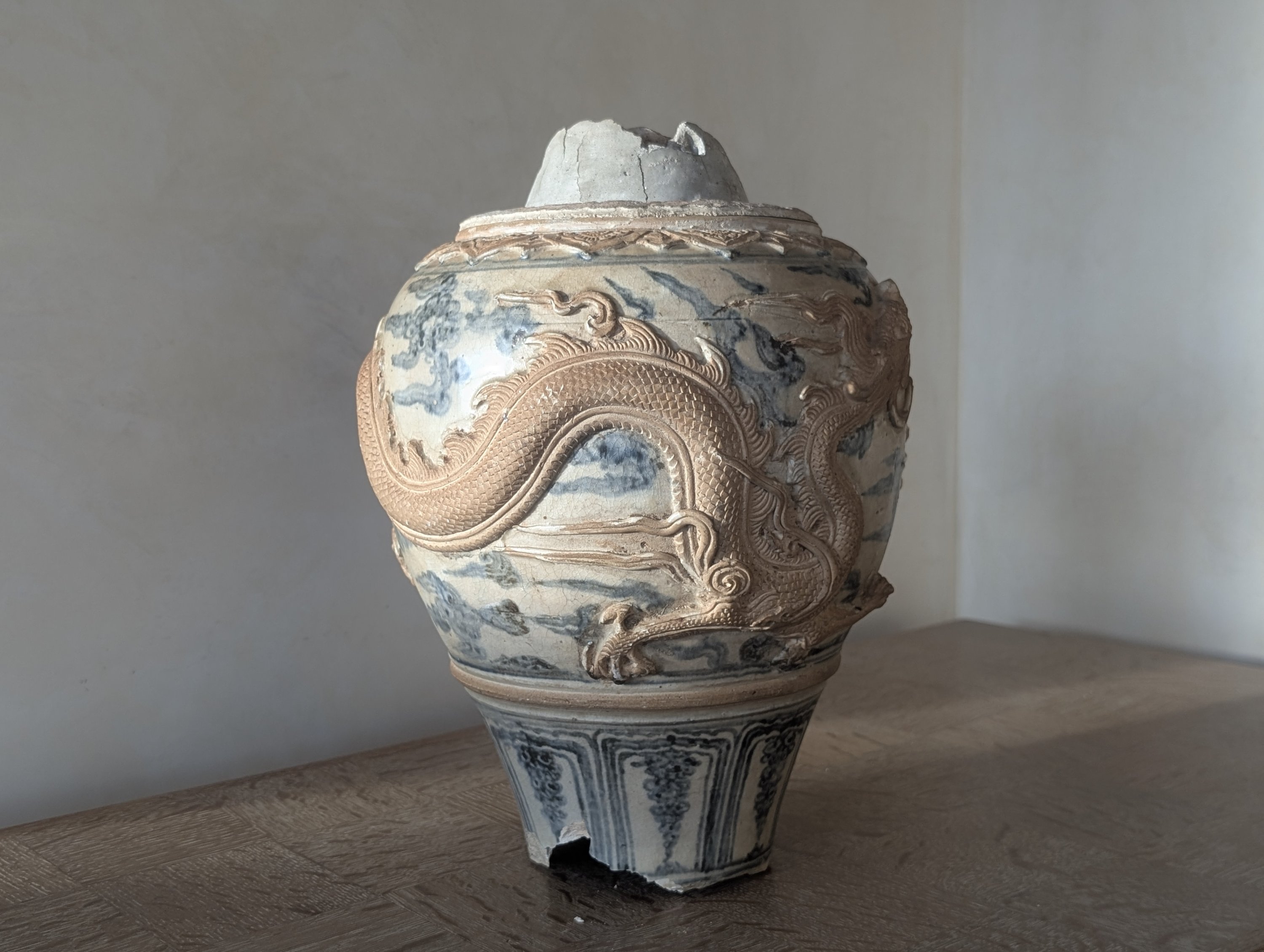 (Manque le pied et le col, éclats au décor appliqué).