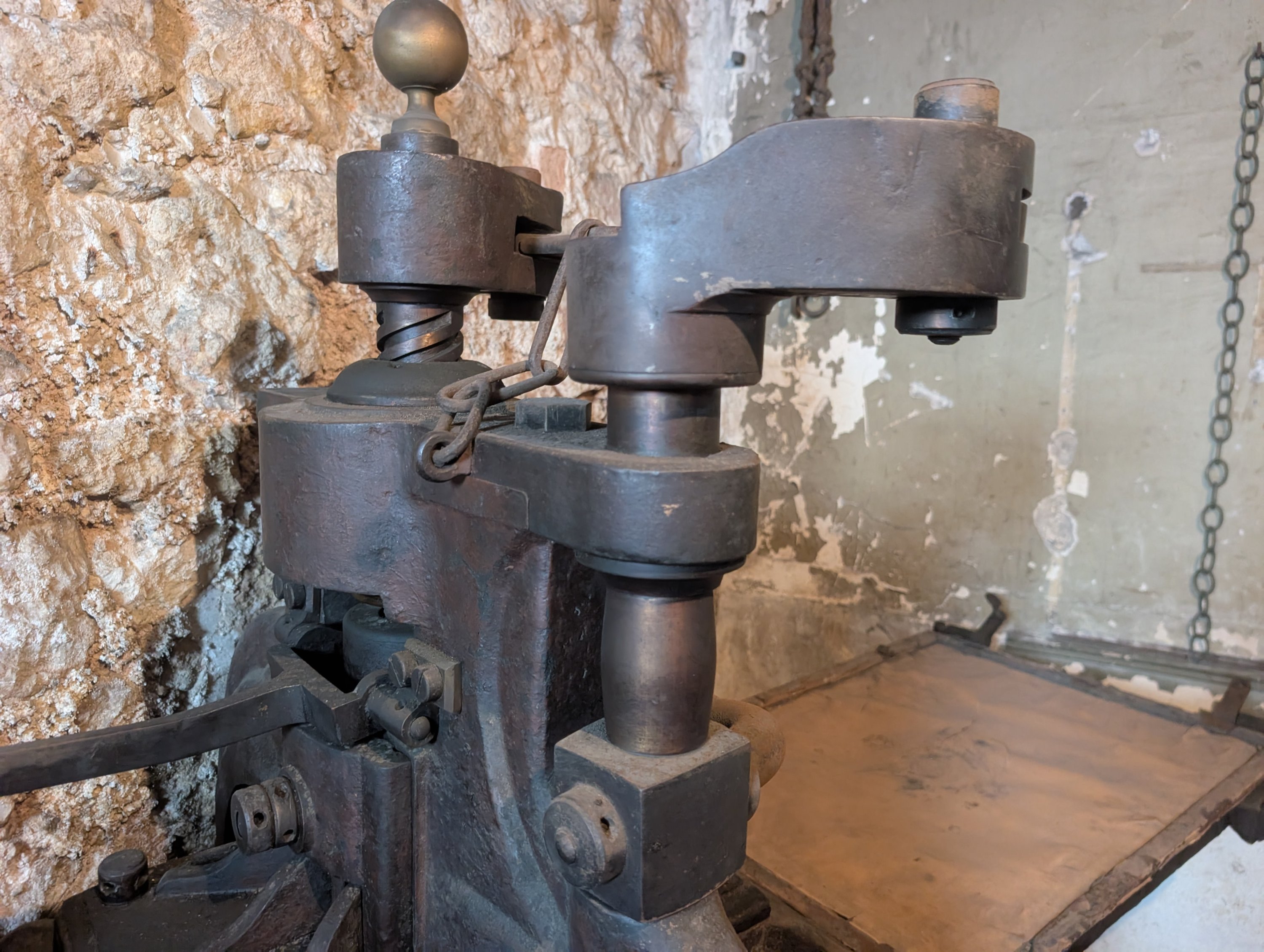 Provenance : cette presse a d’abord servi au célèbre graveur et illustrateur Auguste Lepère (1849-1918), puis aux maîtres pressiers Jacques Beltrand (1874-1977) et Robert Blanchet (1921-2009).