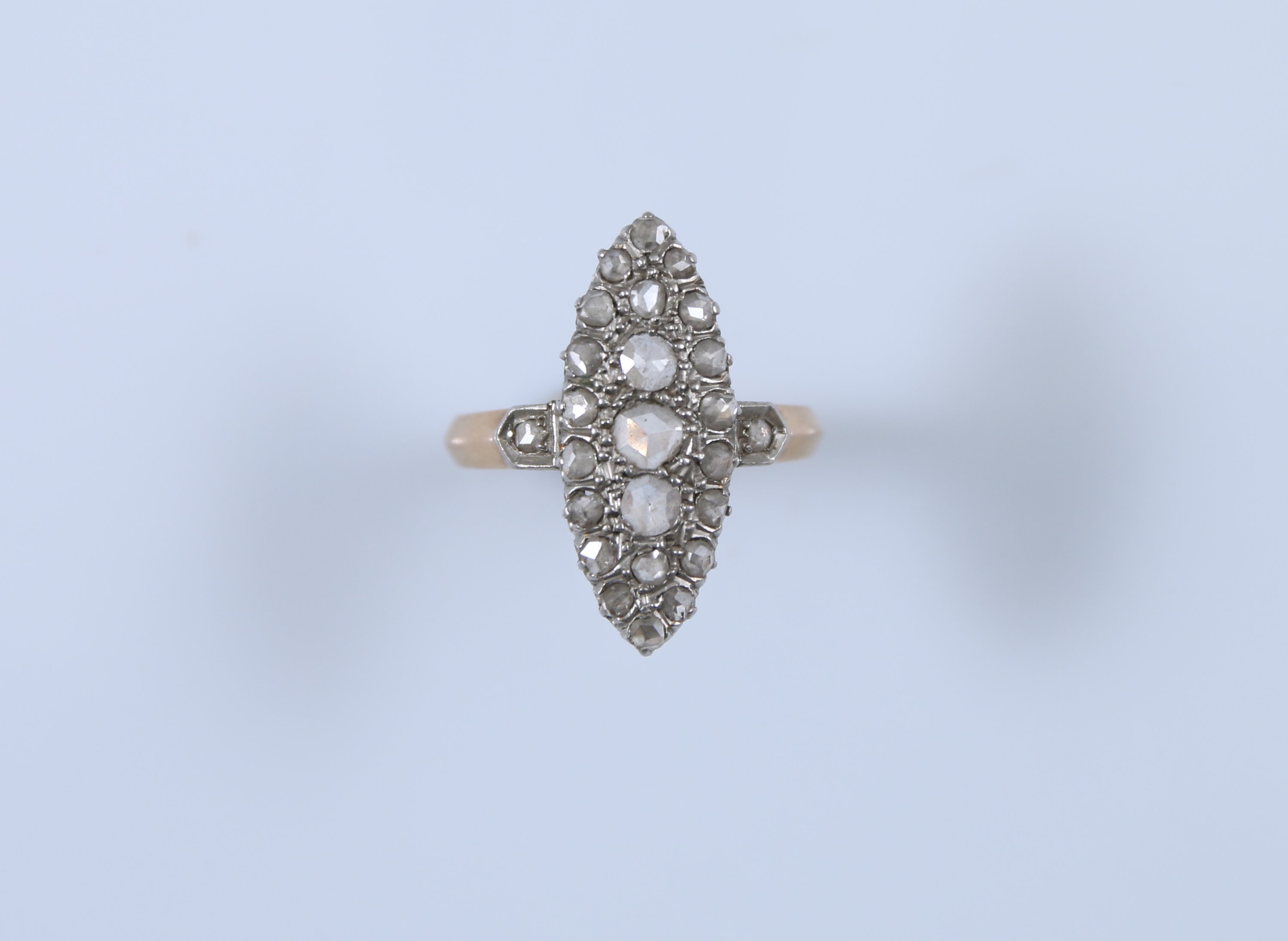 Or jaune 750 millièmes, ornée de 25 diamants taillés en rose.