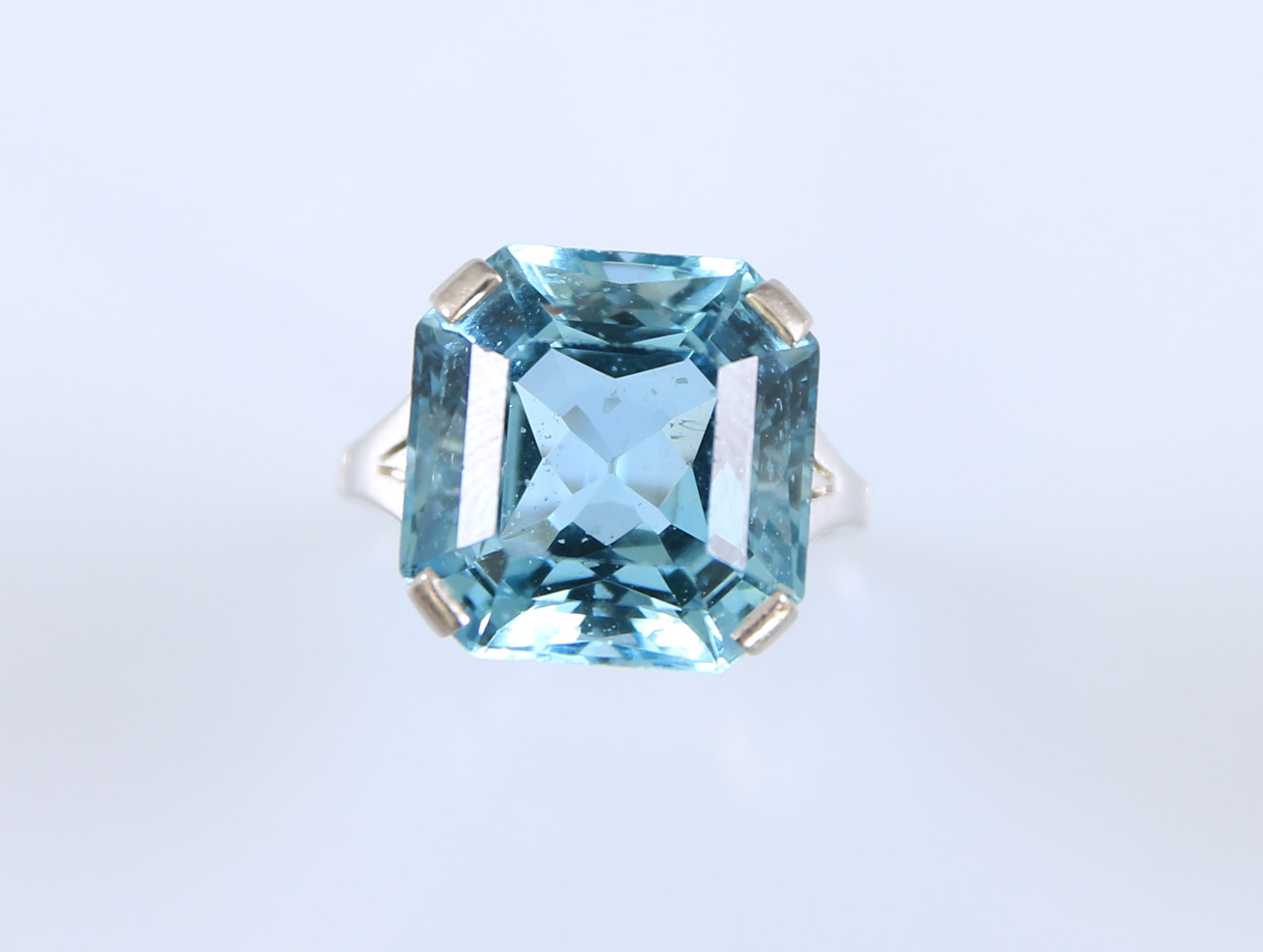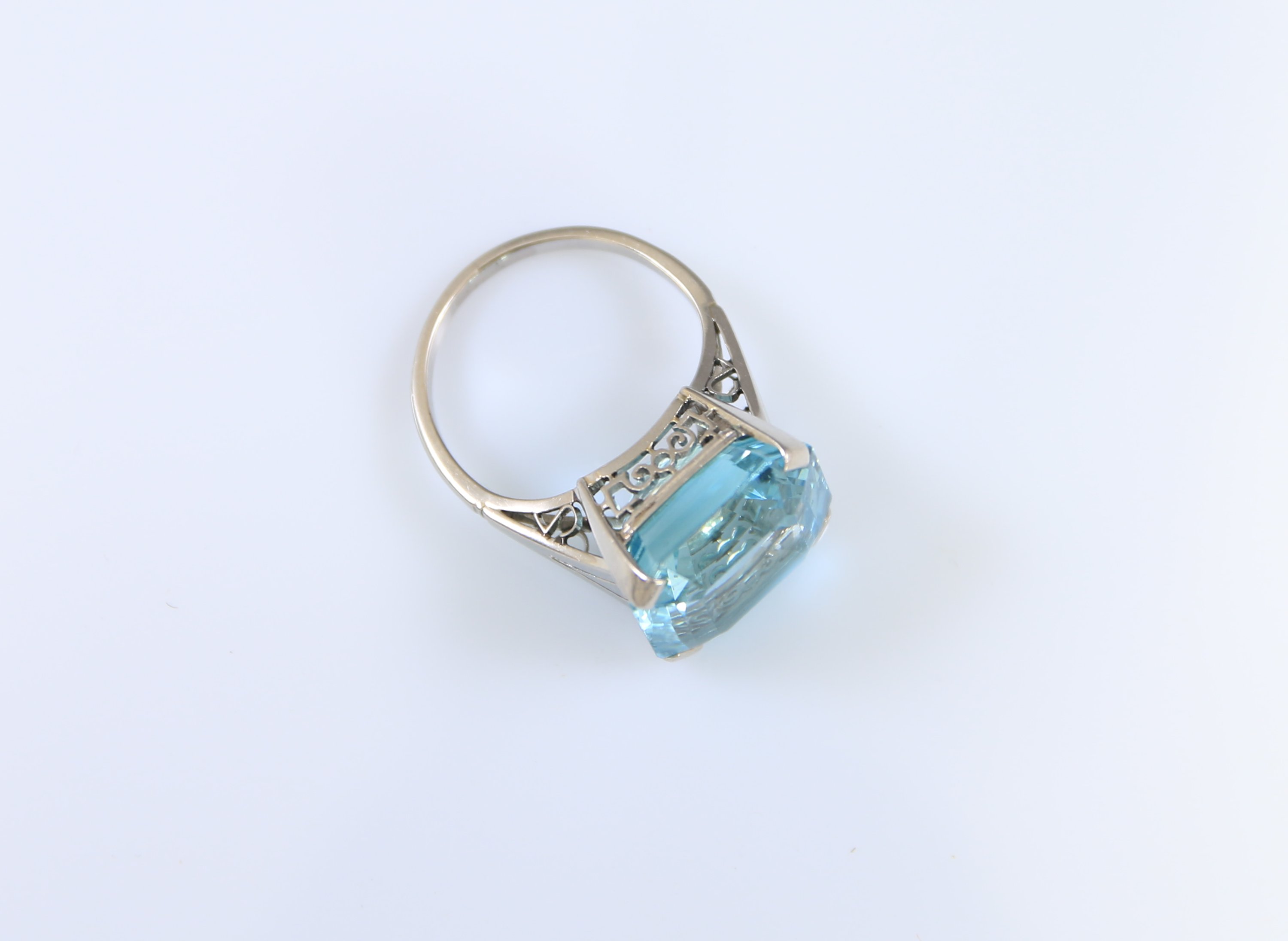 Platine 850 millièmes, ornée au centre d'une aigue-marine de forme rectangulaire à pans coupés.