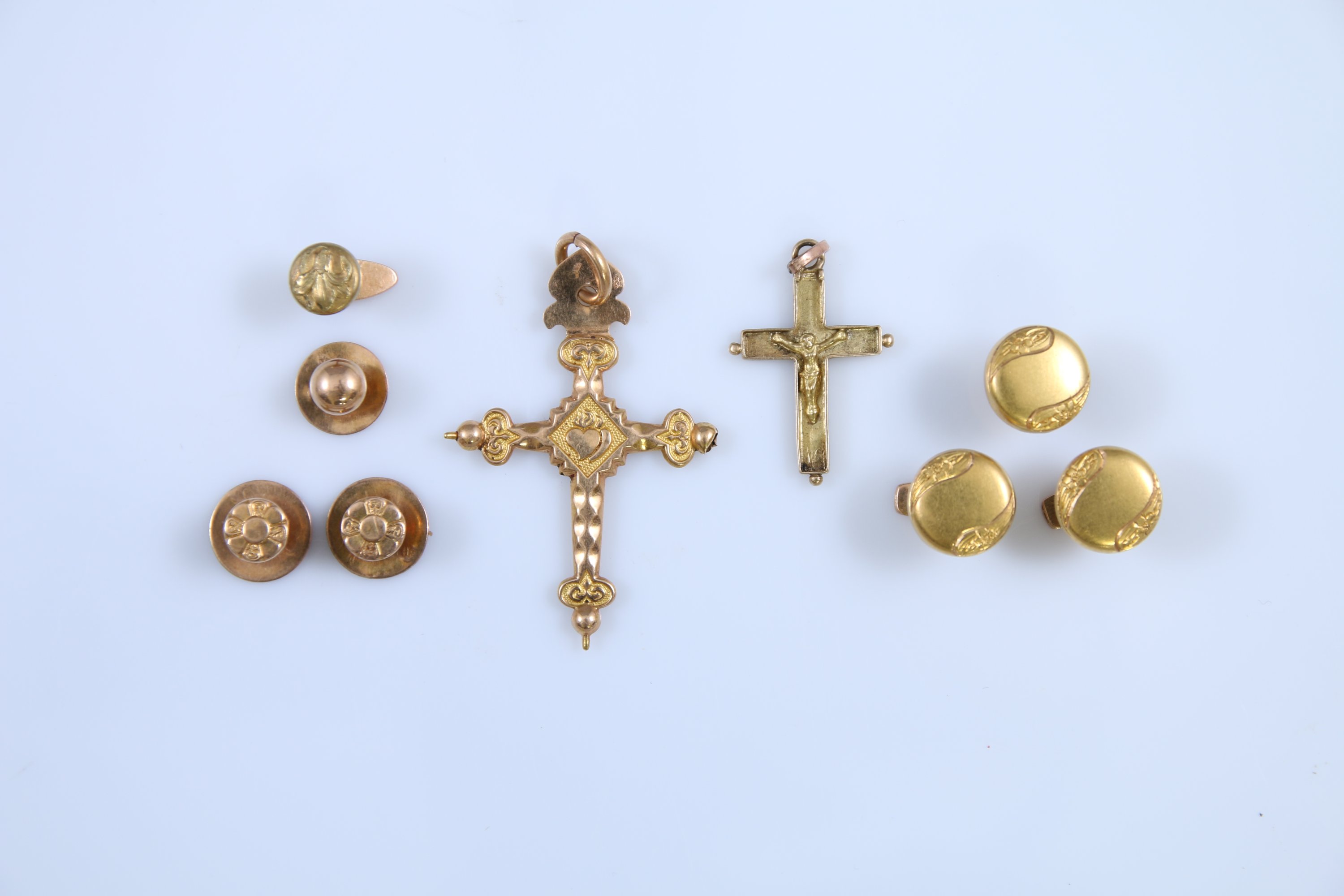 Sept boutons de différents modèles et deux croix