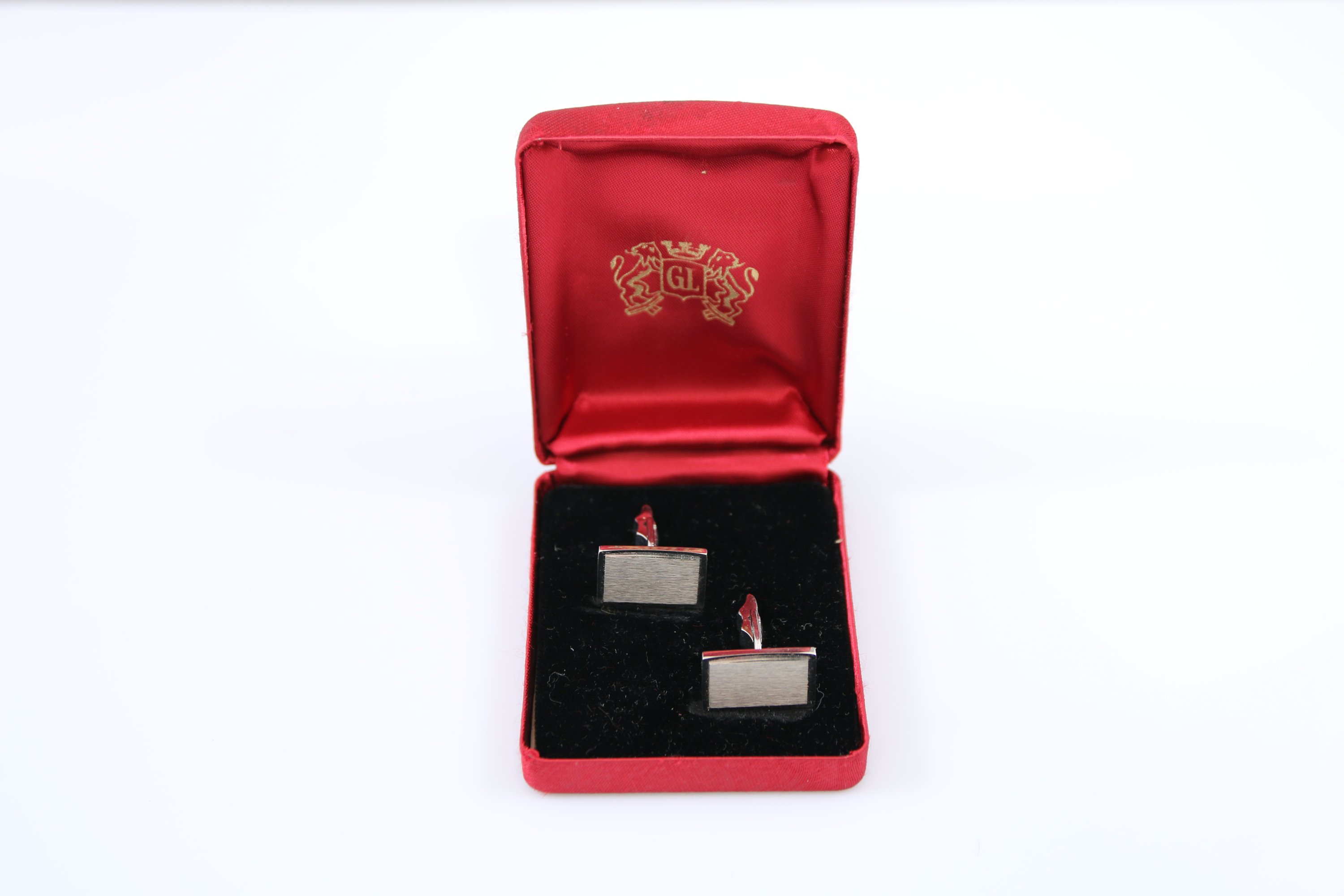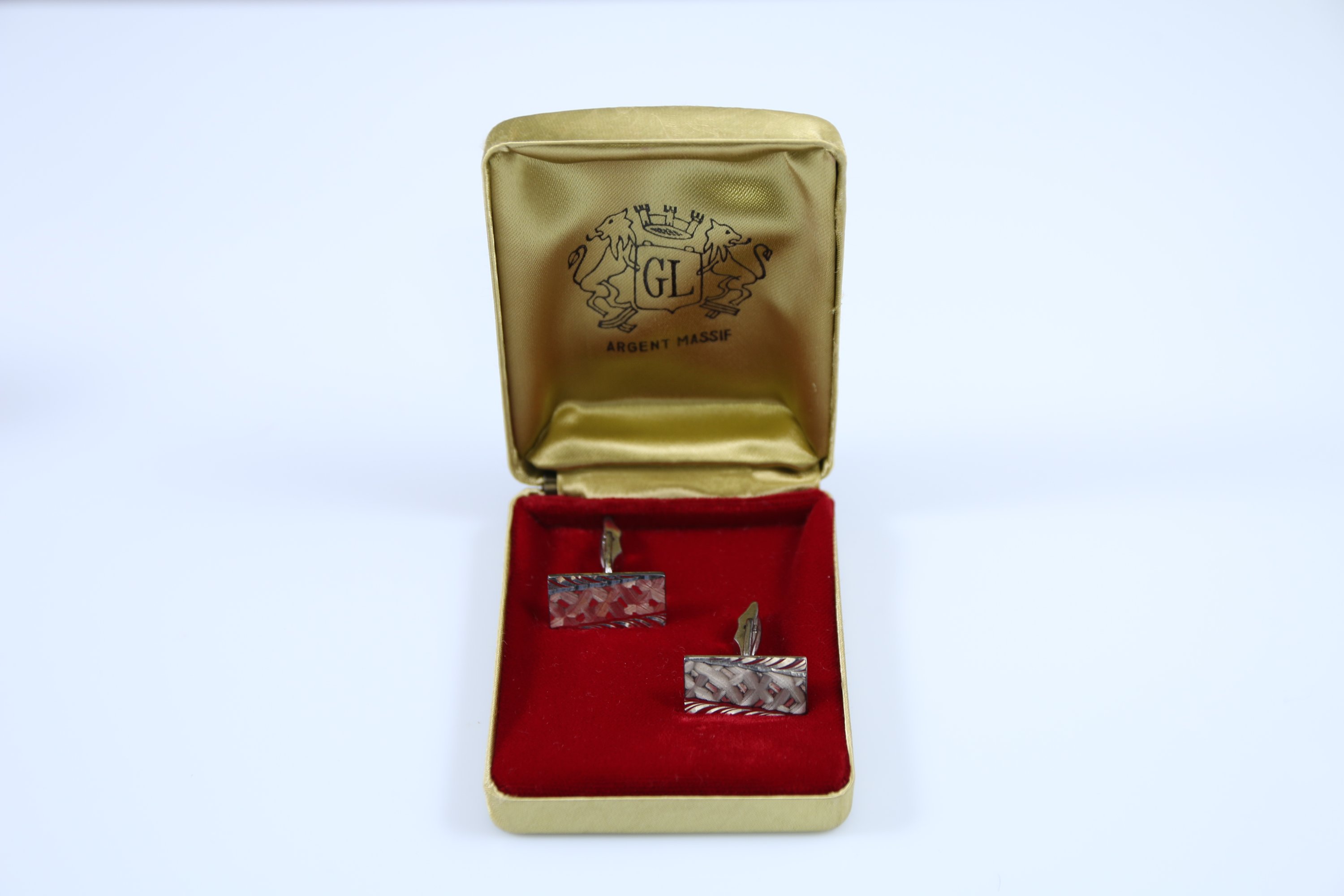 Joints : deux paires de boutons de manchettes en argent de forme rectangulaire. Poids : 28,1 g.