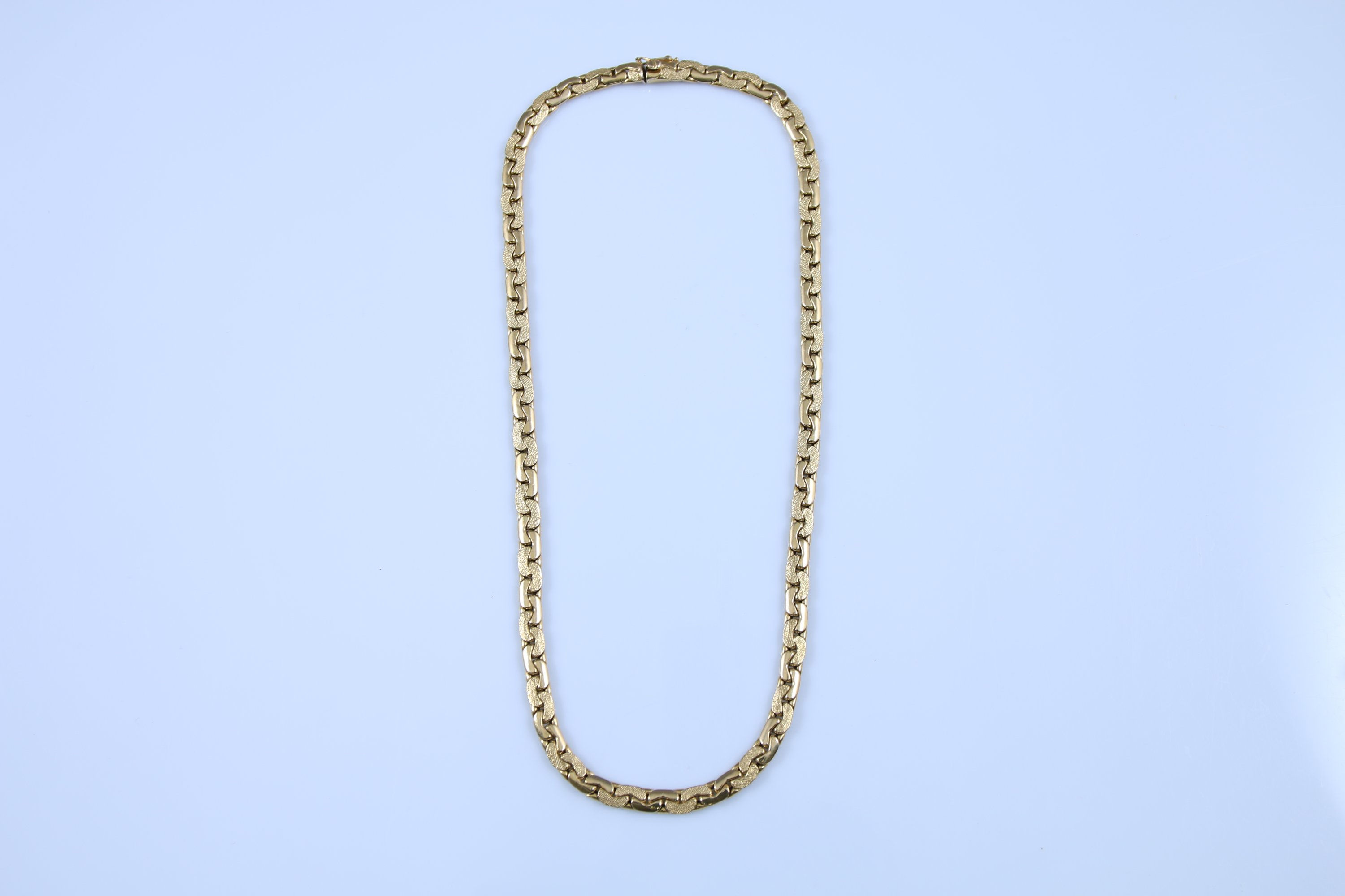Mailles plates deux tons, or brillant et amati.