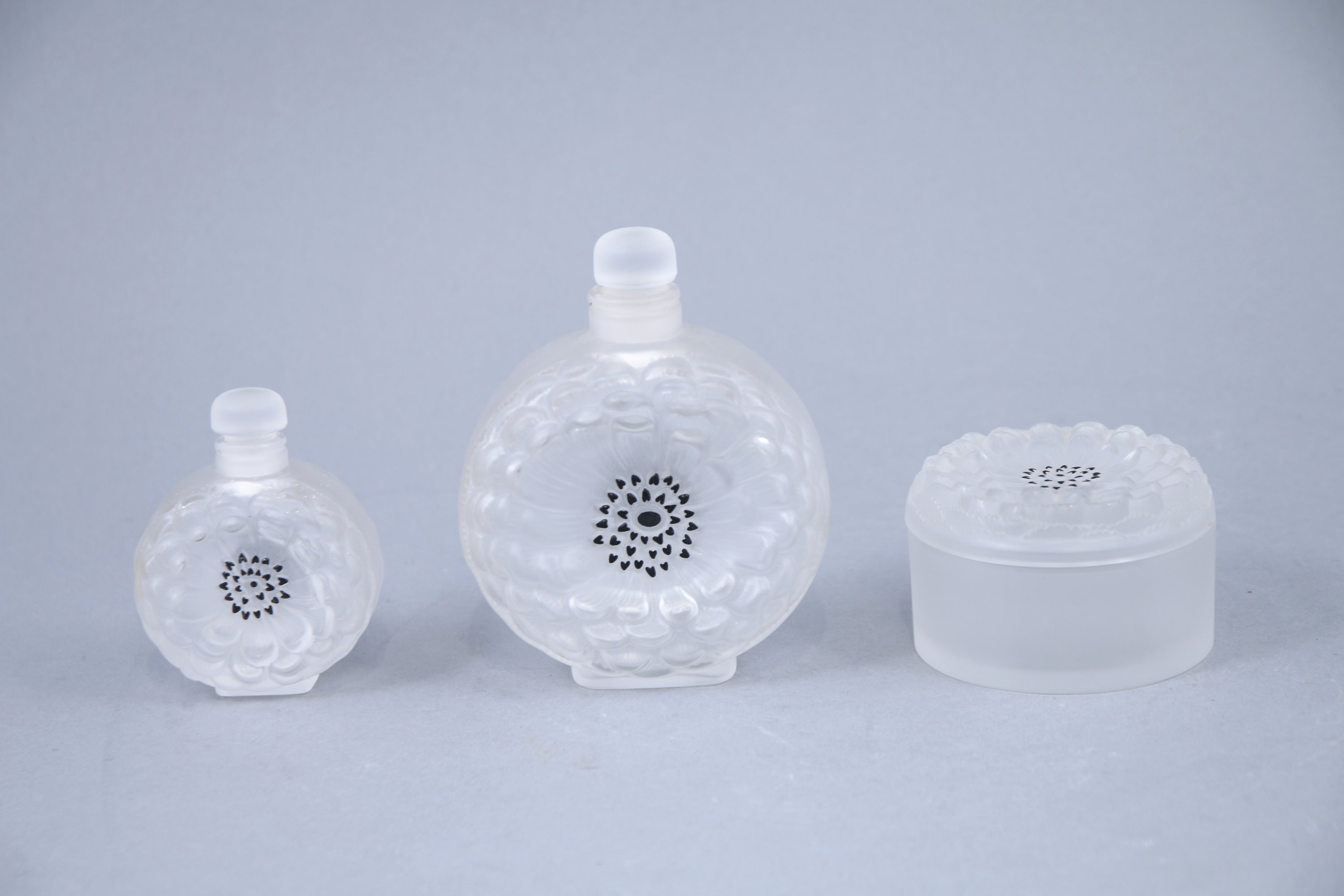 Bibliographie : Félix Marcilhac, "René Lalique : catalogue raisonné de l’œuvre de verre », 1994, Paris, Editions de l'Amateur, p. 346, n°617 à 619.
