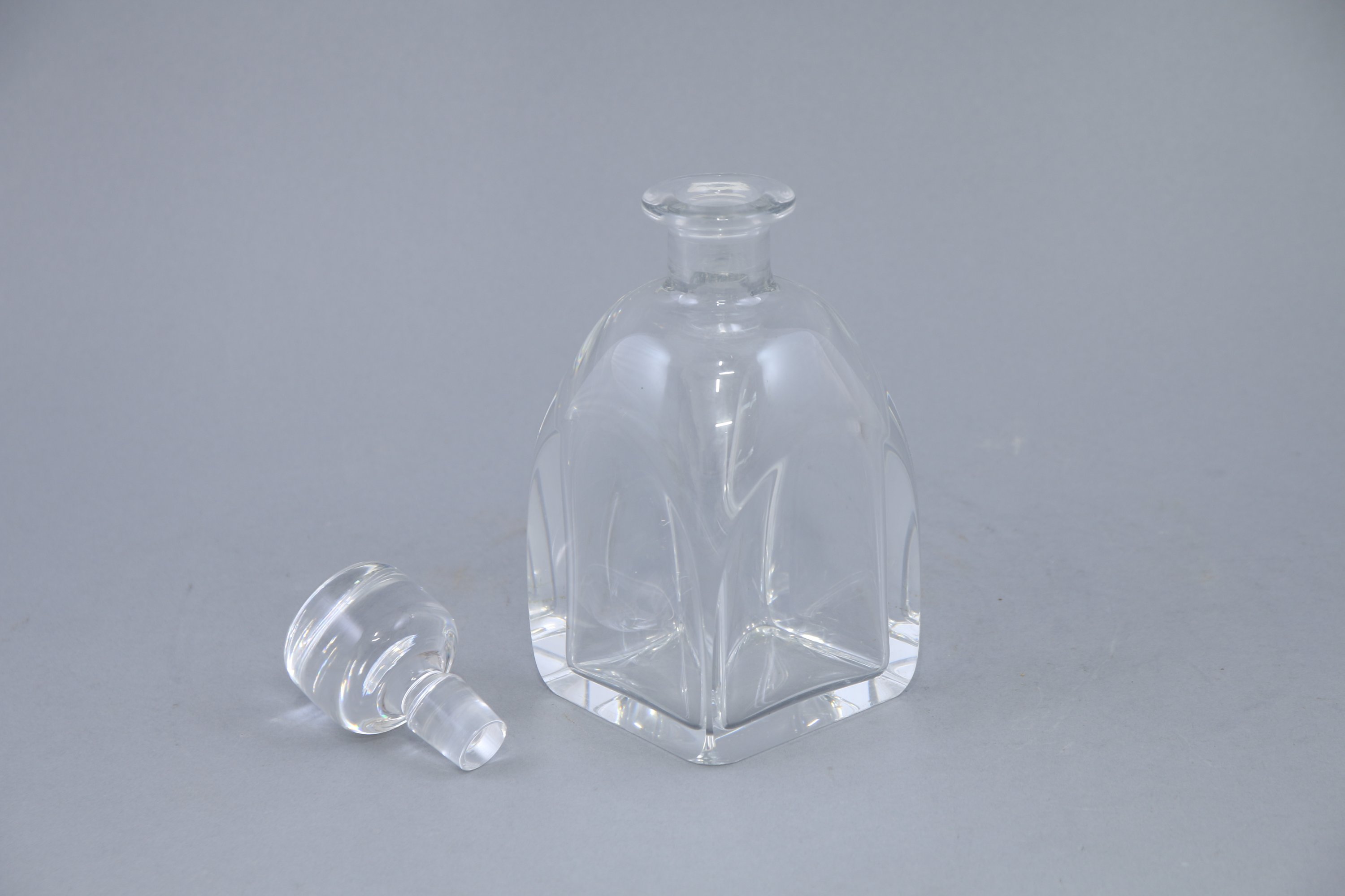 En deux tailles de forme carrée à pans coupés et cols godronnés. Les bouchons à pans coupés.