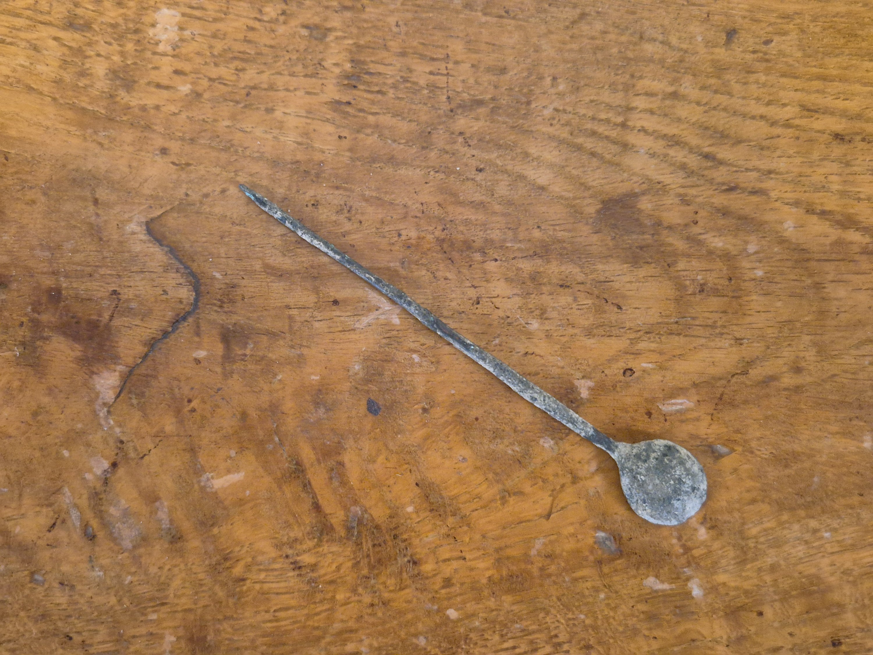 Joint : une cuillère à fard antique en bronze.