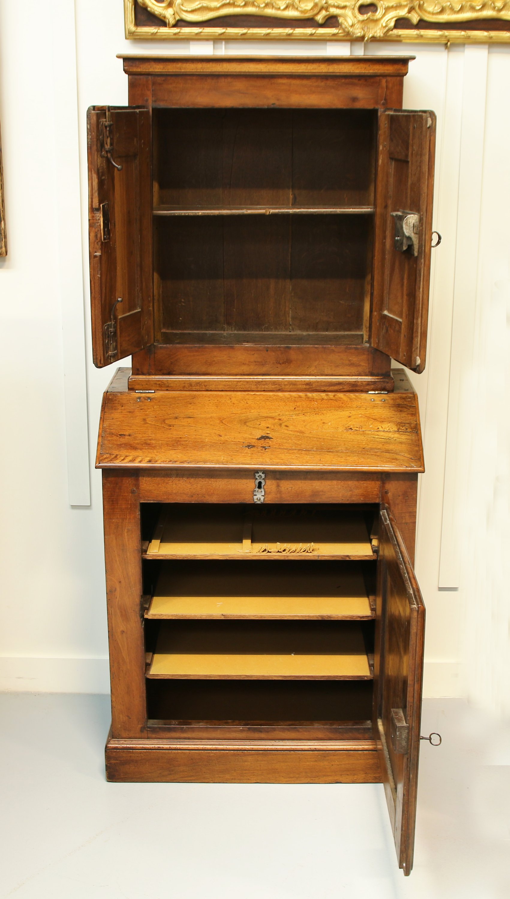 Coiffé d'une corniche, il ouvre en partie supérieure par deux vantaux. La partie inférieure à un abattant surmontant un vantail. Il repose sur une plinthe.