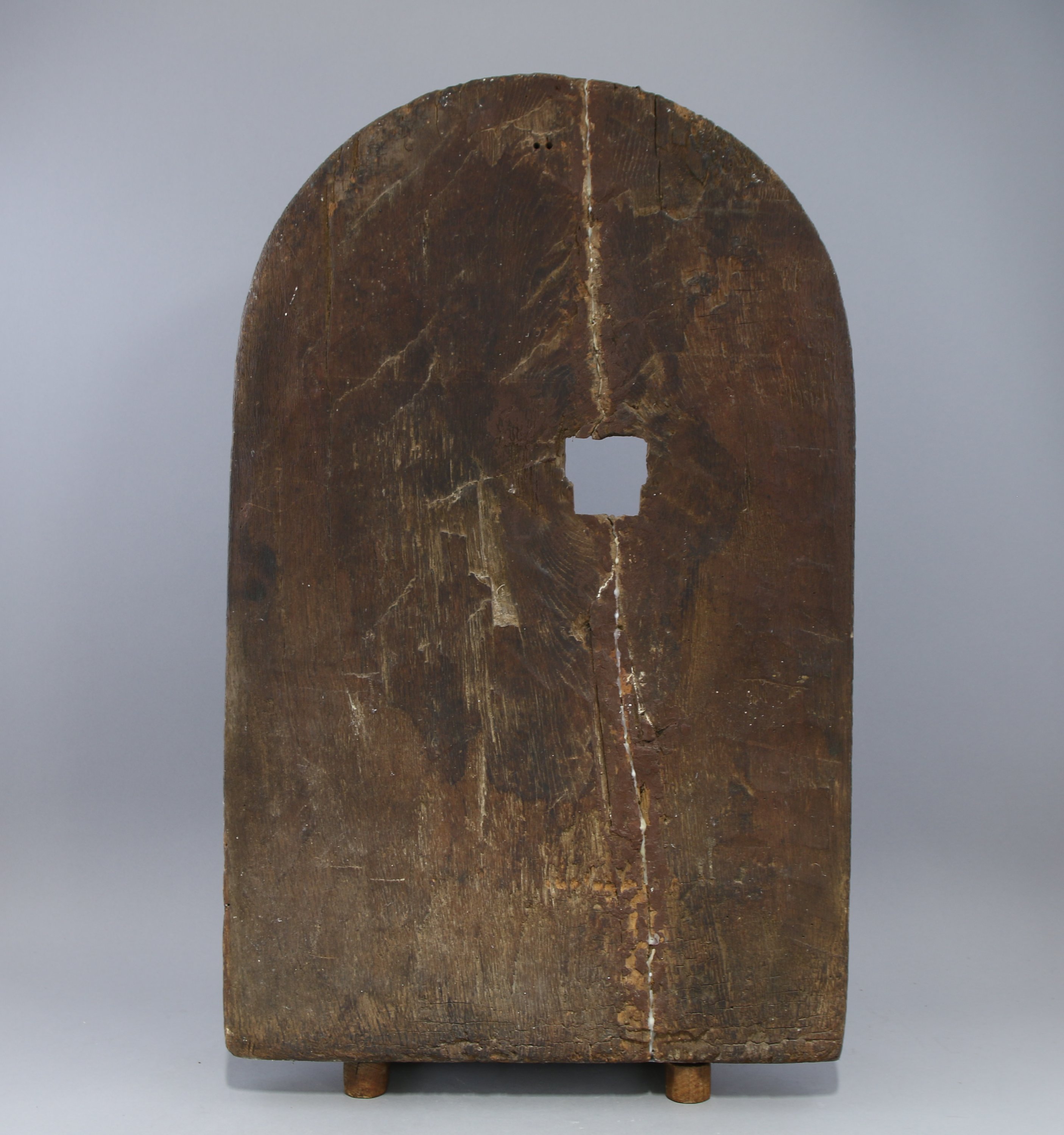 Bois sculpté en bas-relief avec restes de polychromie.