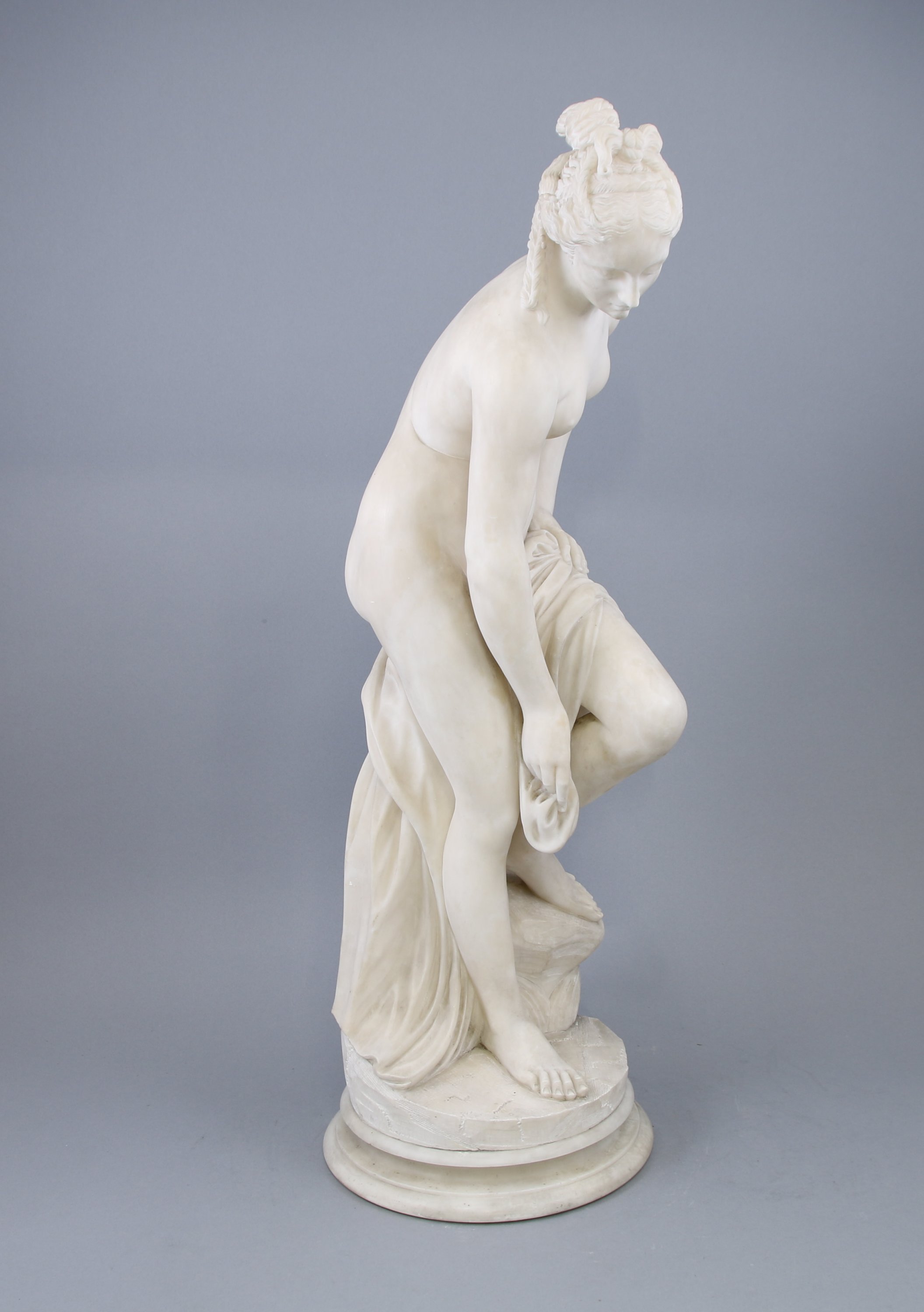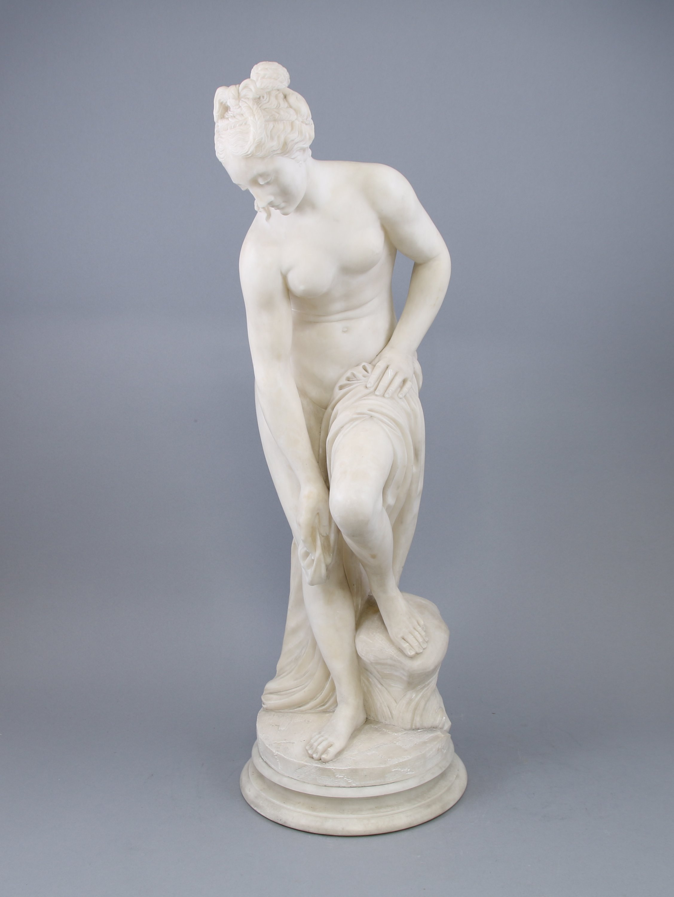 Le roi Louis XV commande à Christophe-Gabriel Allegrain une Vénus sortant du bain en marbre pour orner le château de Choisy, conservée aujourd’hui au musée du Louvre. L’esquisse est présentée au Salon de 1757, la critique accueille ensuite très favorablement le marbre au Salon de 1767, Diderot déclare à son sujet « Belle, belle, sublime figure, ils disent même la plus belle, la plus parfaite figure de femme que les modernes aient faite ». L’œuvre est finalement offerte par le roi à sa favorite Madame du Barry en 1772 et placée dans le parc du château de Louveciennes. Les éditeurs du XIXème siècle s’emparent du sujet qui connait un fort engouement dans des dimensions réduites et dans divers matériaux, marbre, bronze ou terre cuite.