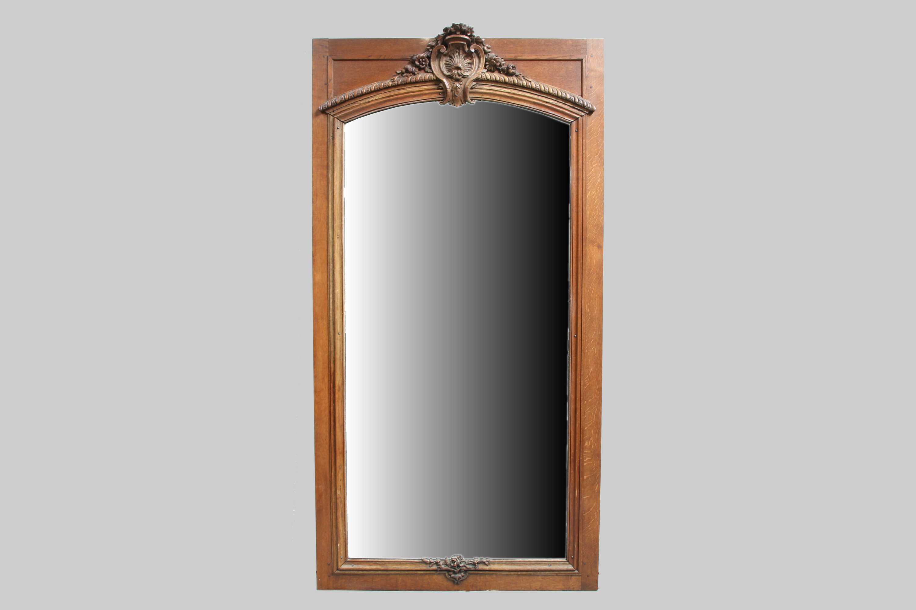 Ils sont sommés d'un cuir entouré de guirlandes fleuries. Les glaces au mercure en deux parties sont soulignées de moulures et terminées en partie basse d'un bouquet de fleurs.