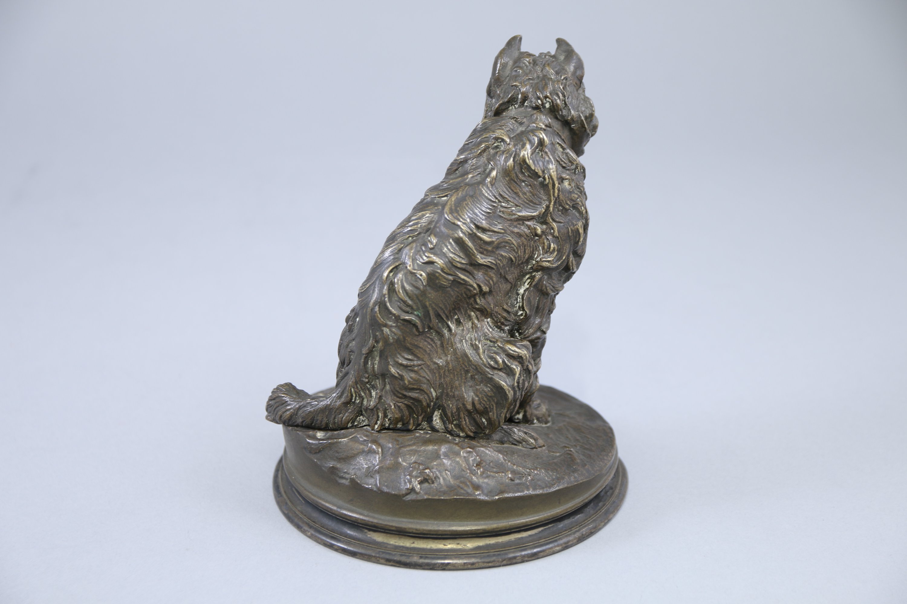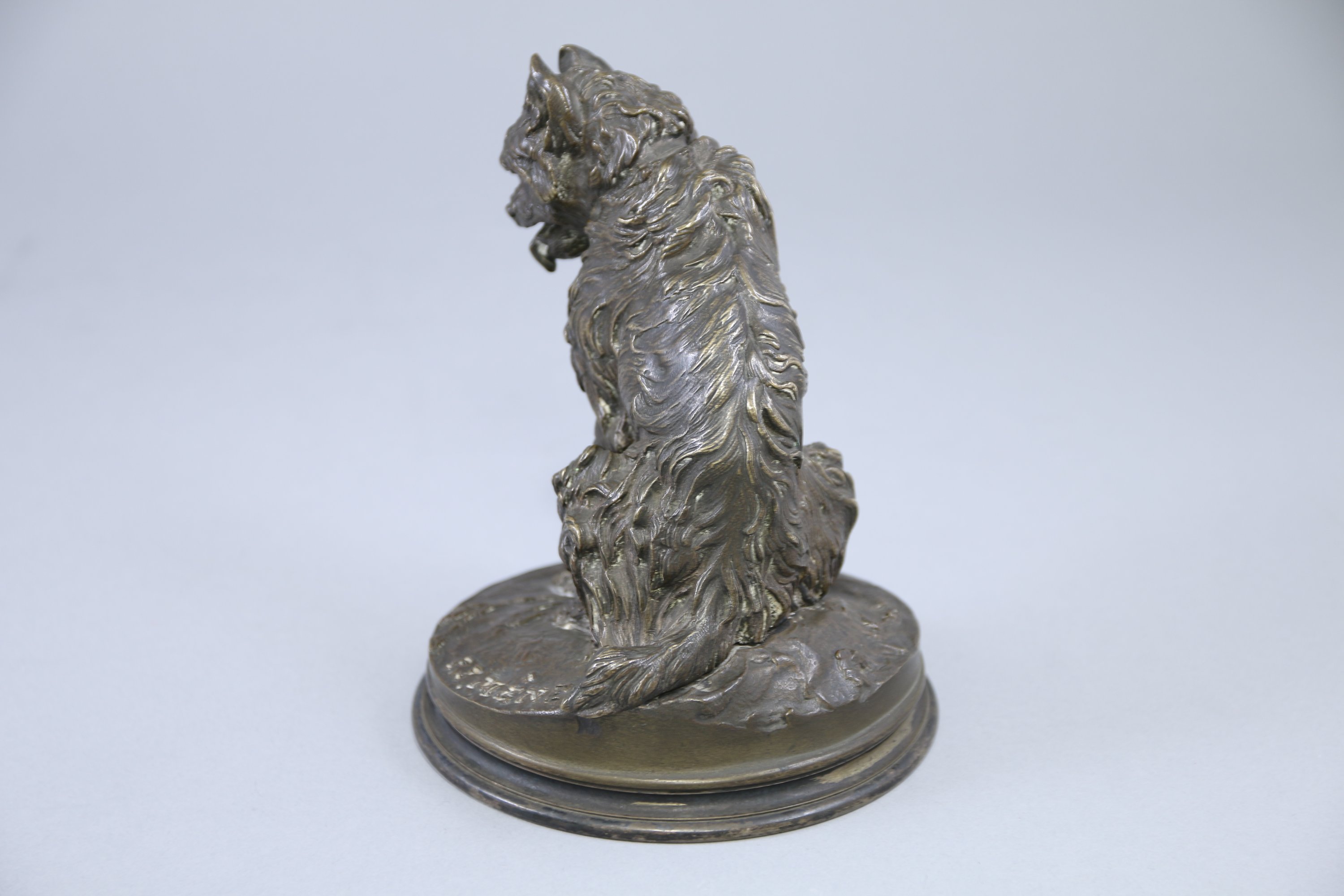 Joint : Presse-papier en bronze à patine brune figurant un lévrier assis sur une base en marbre gris.