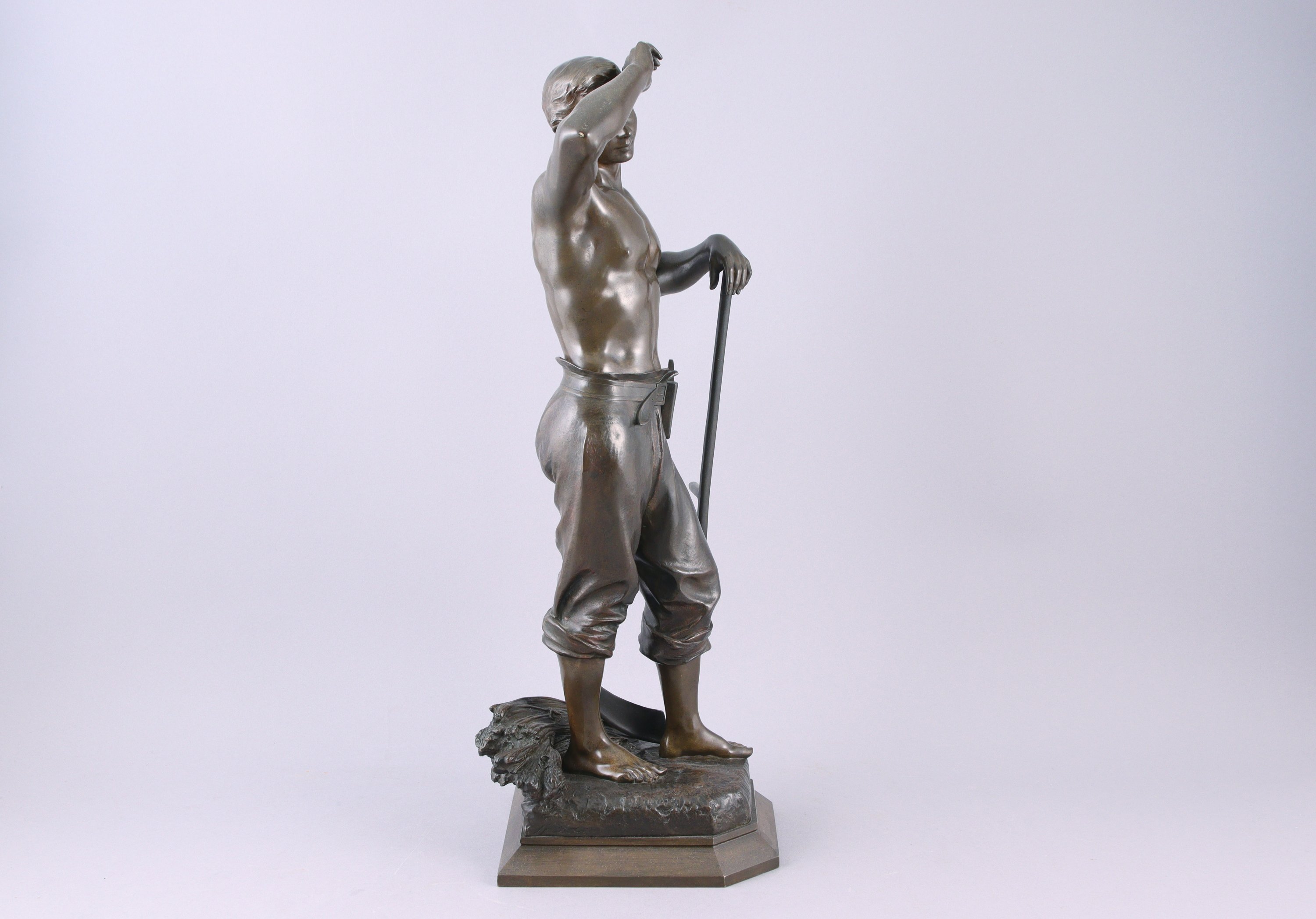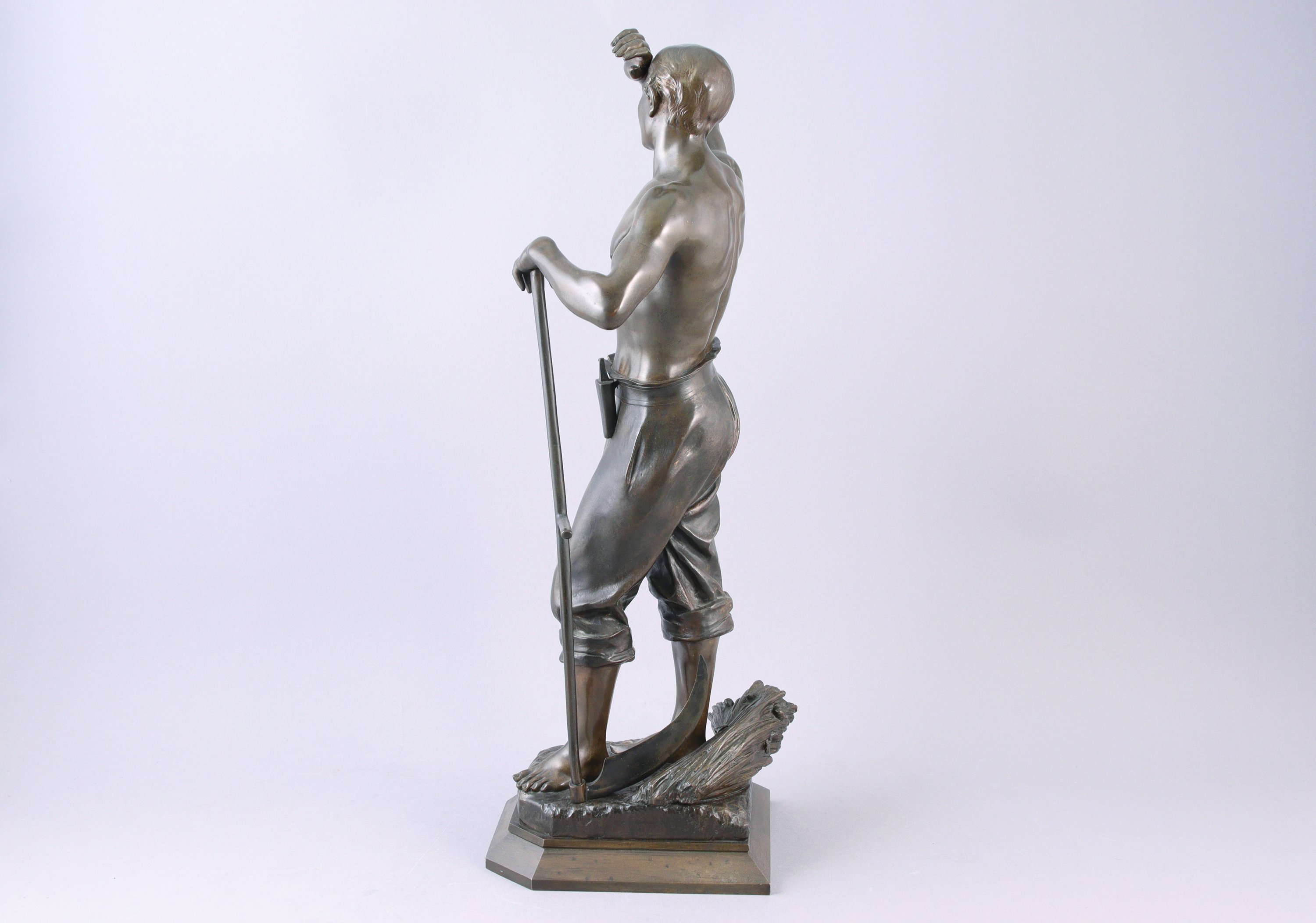 Elève d'Alexandre Falguière, Julien Caussé est issu d'une famille de sculpteurs. Fils d'Auguste-Marie Caussé (1834-1907) et frère du sculpteur Auguste Caussé (1870-1924), Julien commence à exposer au Salon des Artistes Français en 1888. Son oeuvre est plurielle. Il traite autant les nus féminins que les travailleurs de la IIIe République, à l'instar de ce "Moissonneur".