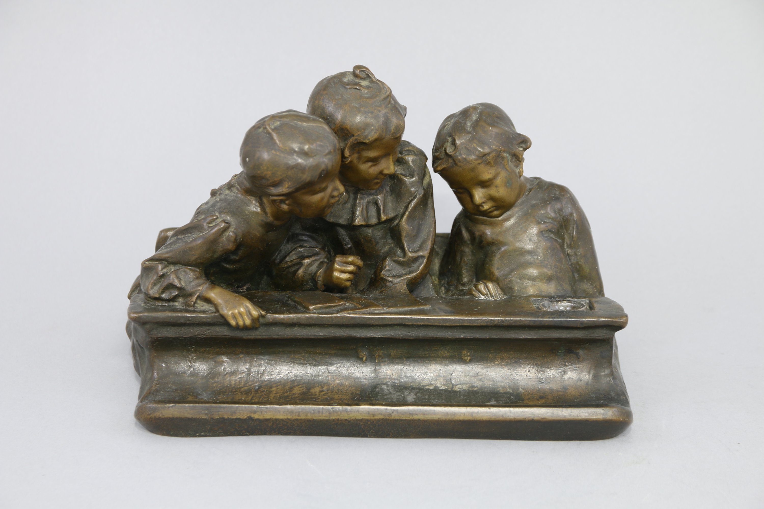 Bronze à patine brune formant encrier et porte-plume.