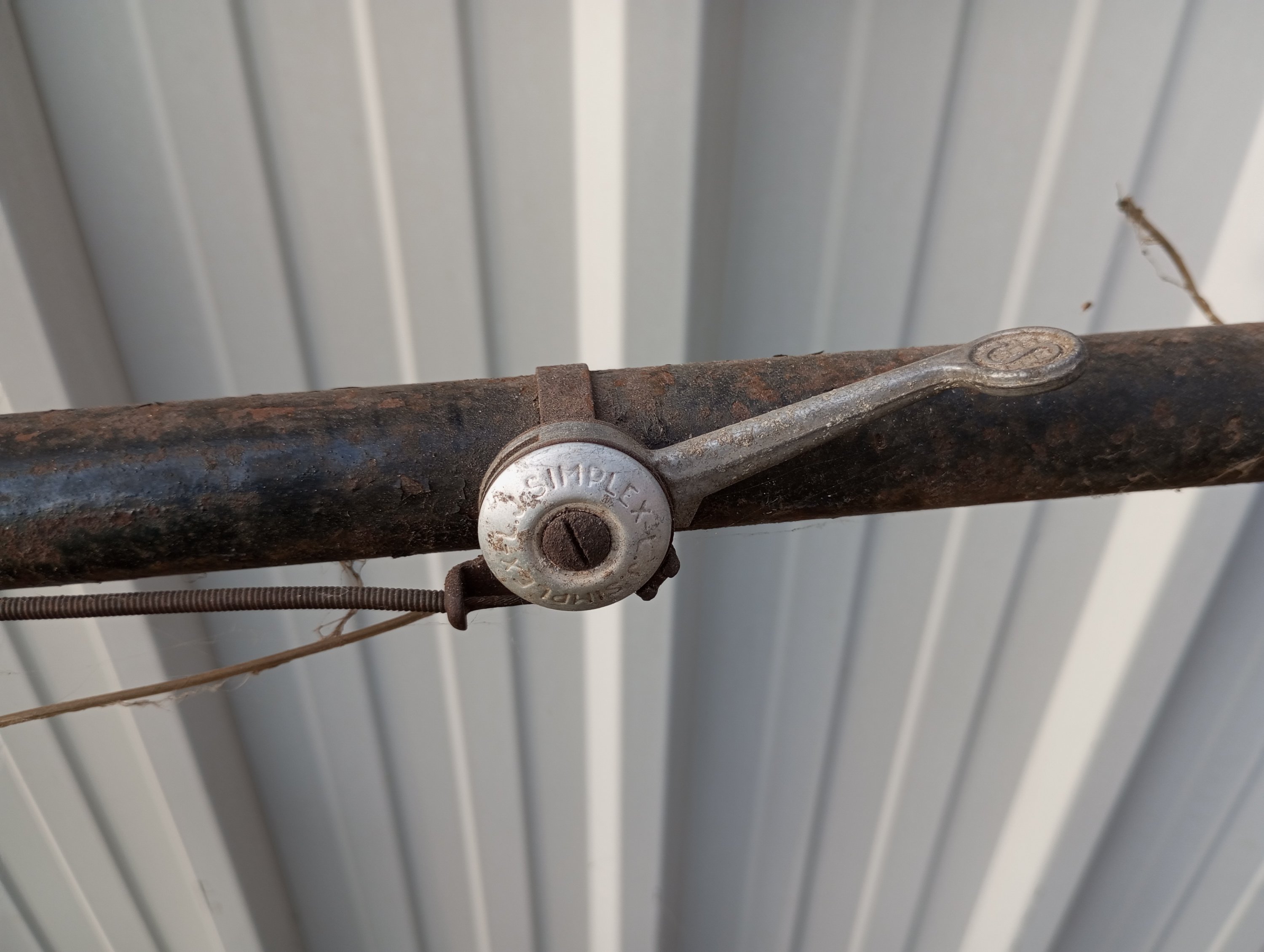 Plateau au triple sigle du lion, et pédales marquées "Peugeot".