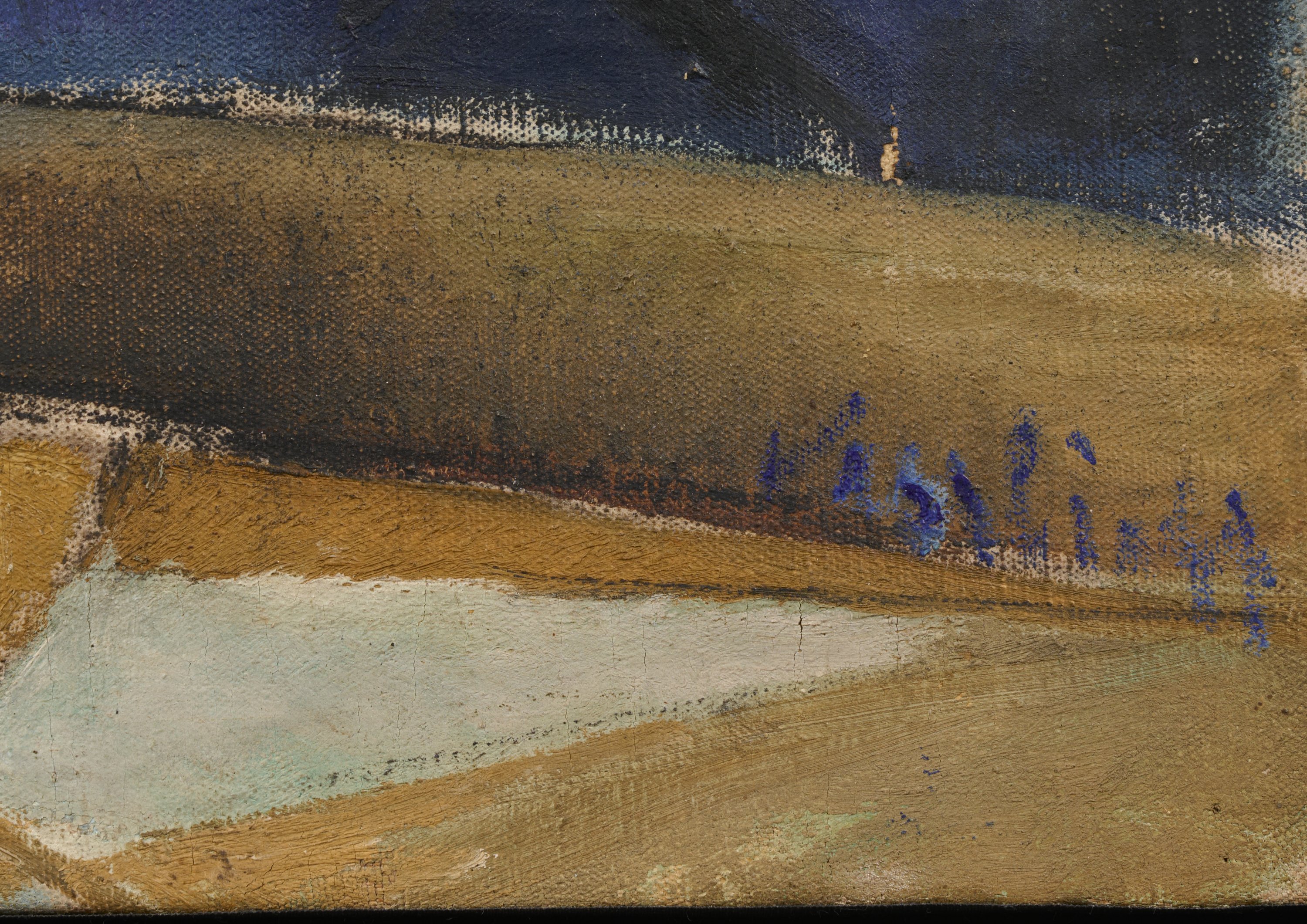 A l’été 1913, Marie Vassilieff emmène ses élèves travailler en Espagne : Fontarabie, Pasajes, Saint-Sébastien. Elle en rapporte des carnets et des toiles. Là où le Paysage espagnol scrute la terre, ce Port d’Espagne s’ouvre sur la mer. Au premier plan, l’eau ; au fond, le village et le port ; au centre, un remorqueur rouge et noir dont la masse tranche avec les aplats clairs du ciel et des façades. La composition tient à la fois du cubisme avec sa fragmentation des plans et vue simultanée, et du futurisme, dans l’énergie mécanique dégagée par l’embarcation. C’est précisément ce type de toile que Vassilieff présente en Russie fin 1915 : des sujets très proches y côtoient les œuvres suprématistes de Tatline, Exter et Rodtchenko. Exposé à la Fondation Beyeler de Riehen-Bâle en 2015, le tableau témoigne d’une Vassilieff en pleine maîtrise, capable de synthétiser en une seule toile les deux grandes révolutions plastiques de son temps.