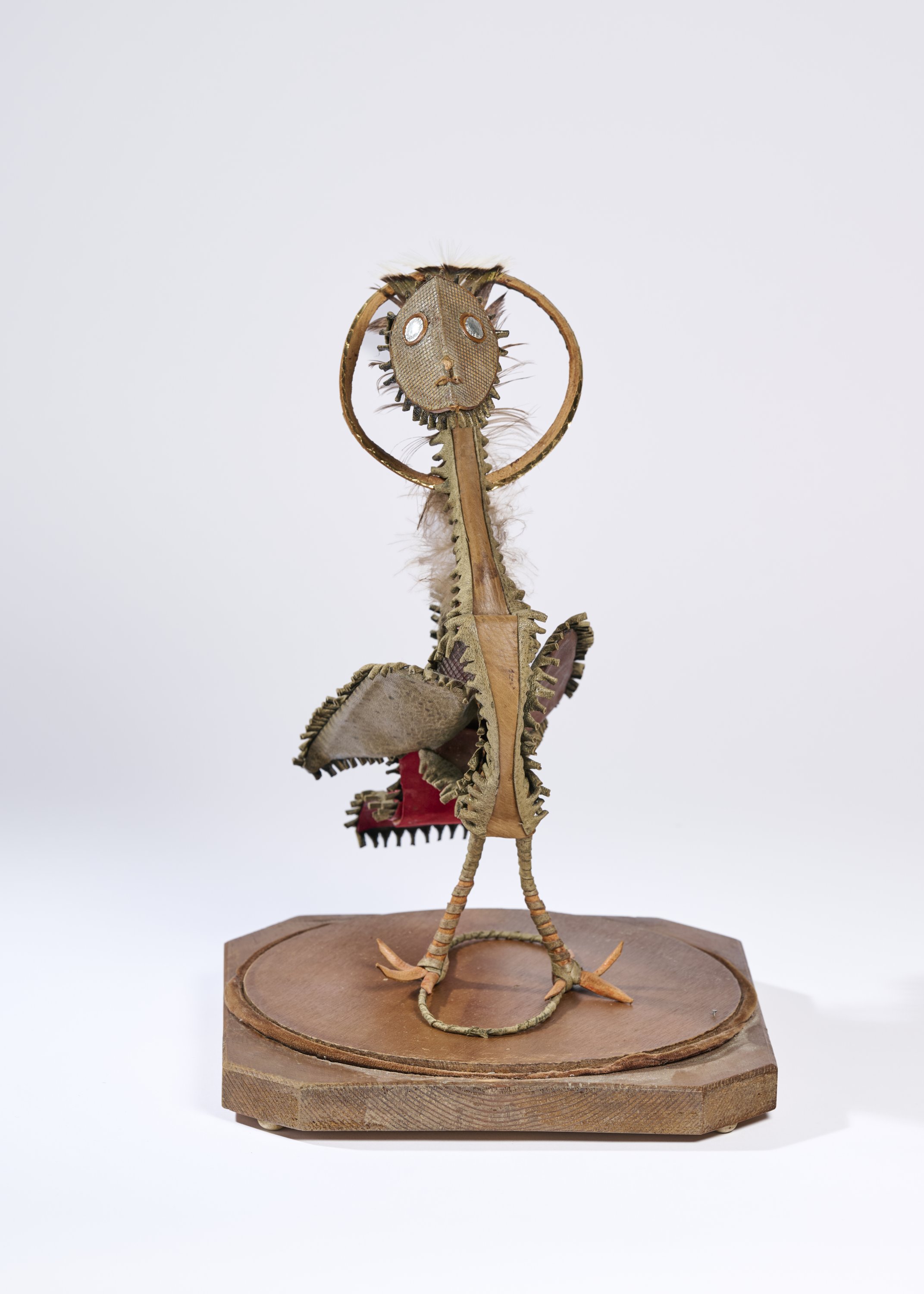 Métal, cuir, plumes, tissus.