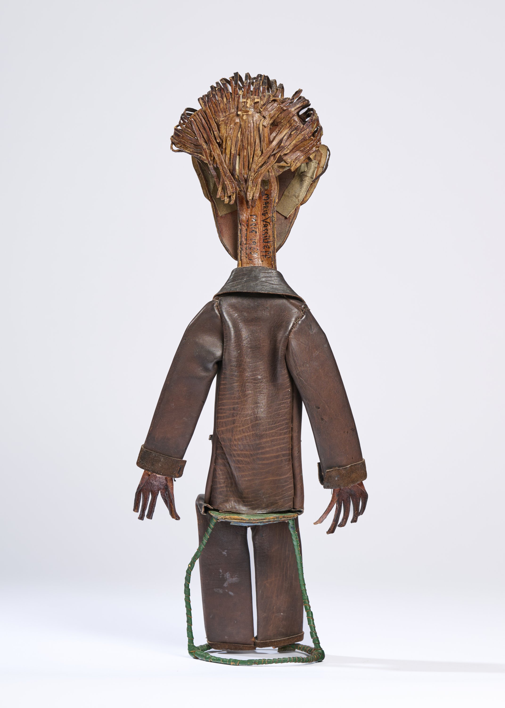 Cuir peint, carton et armature métallique.