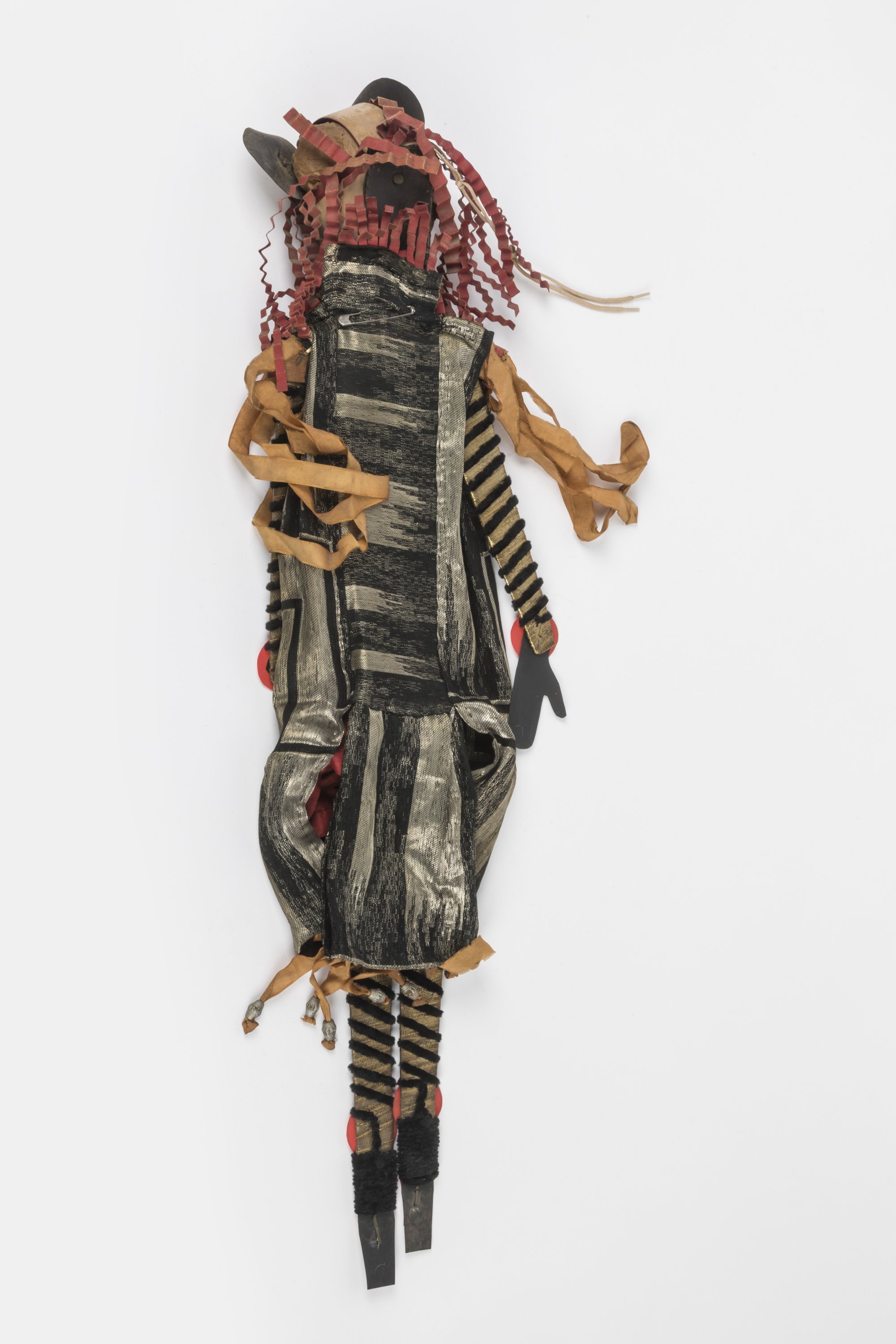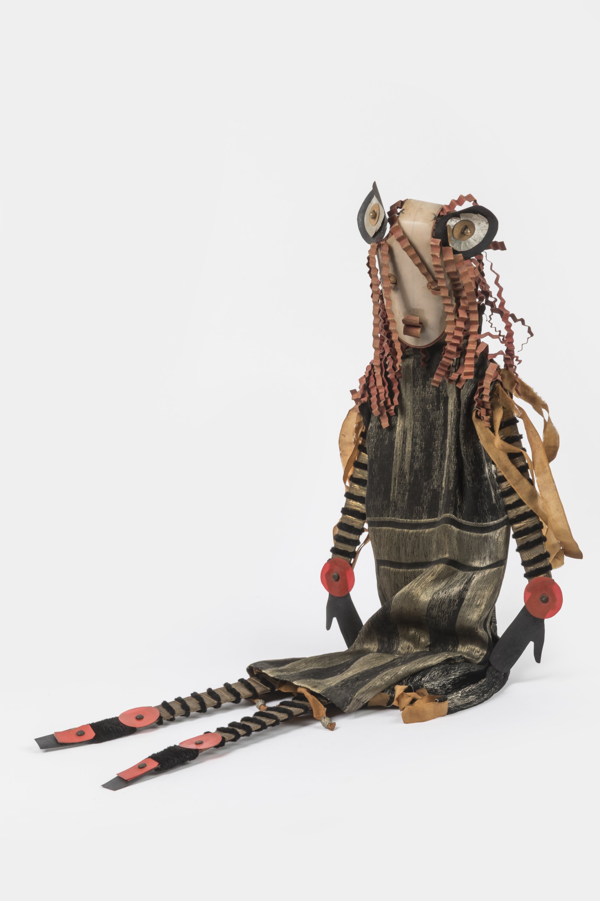 Rodhoïde, tissu, cartonnage polychrome, papier d'argent, attaches parisiennes.