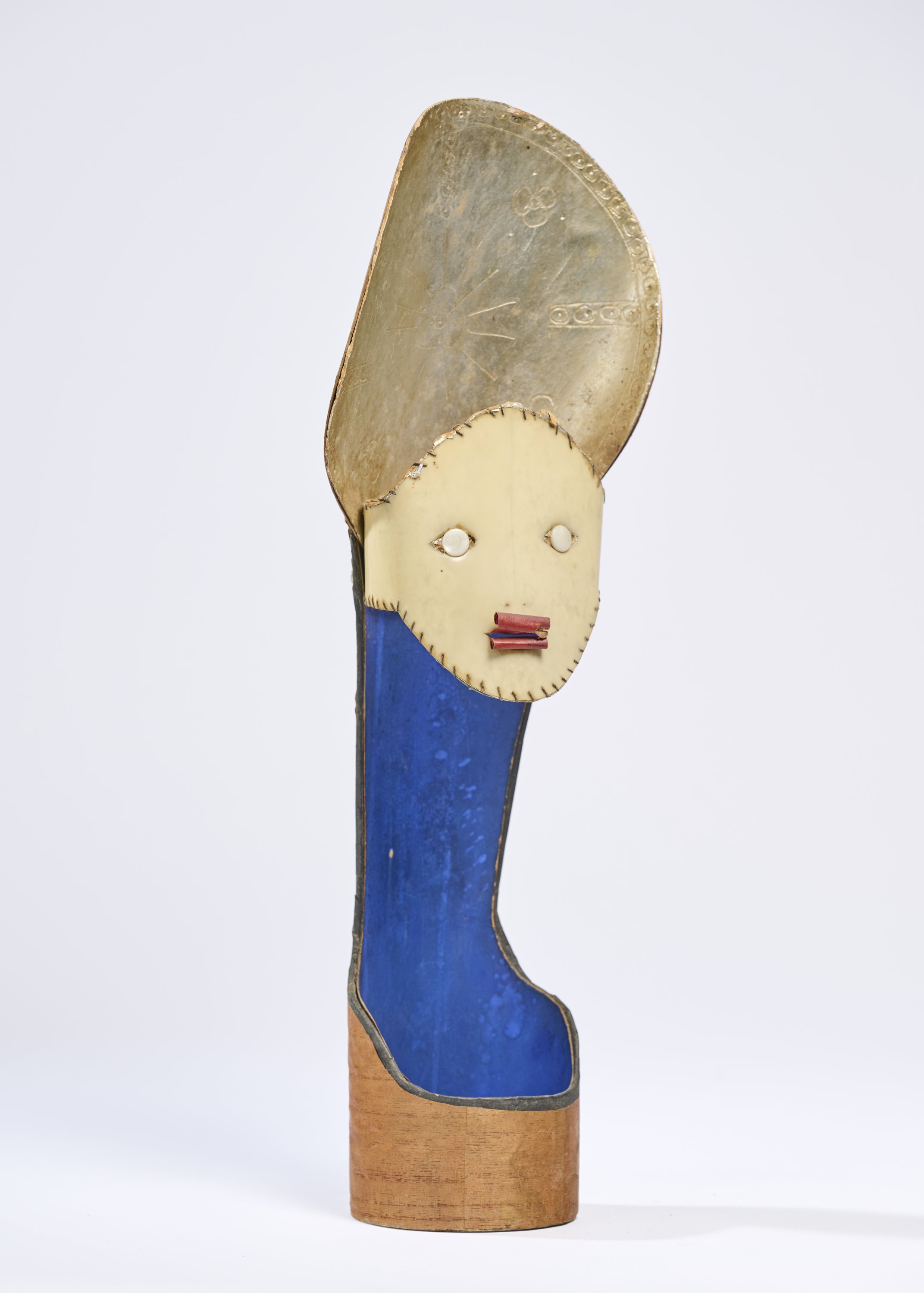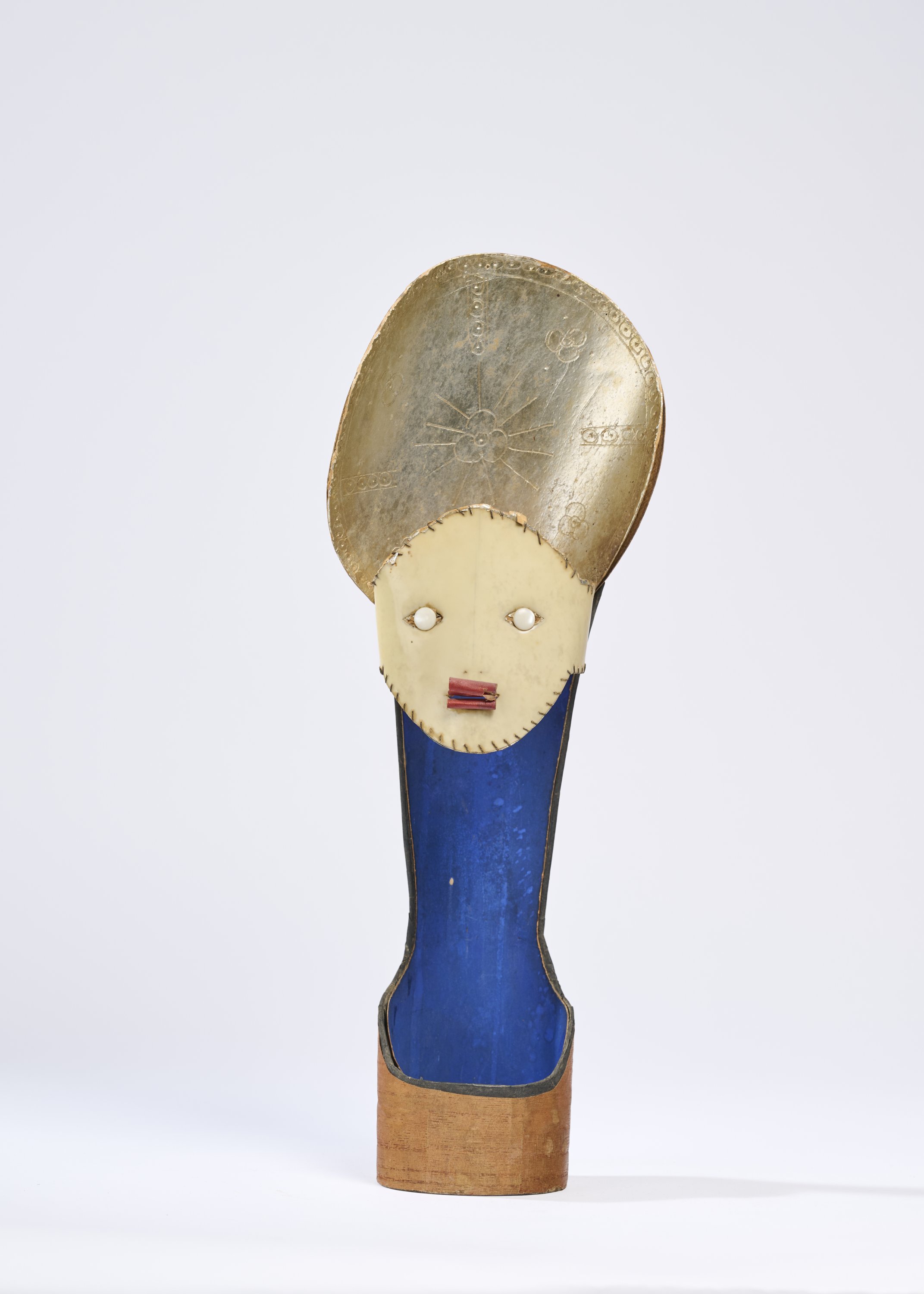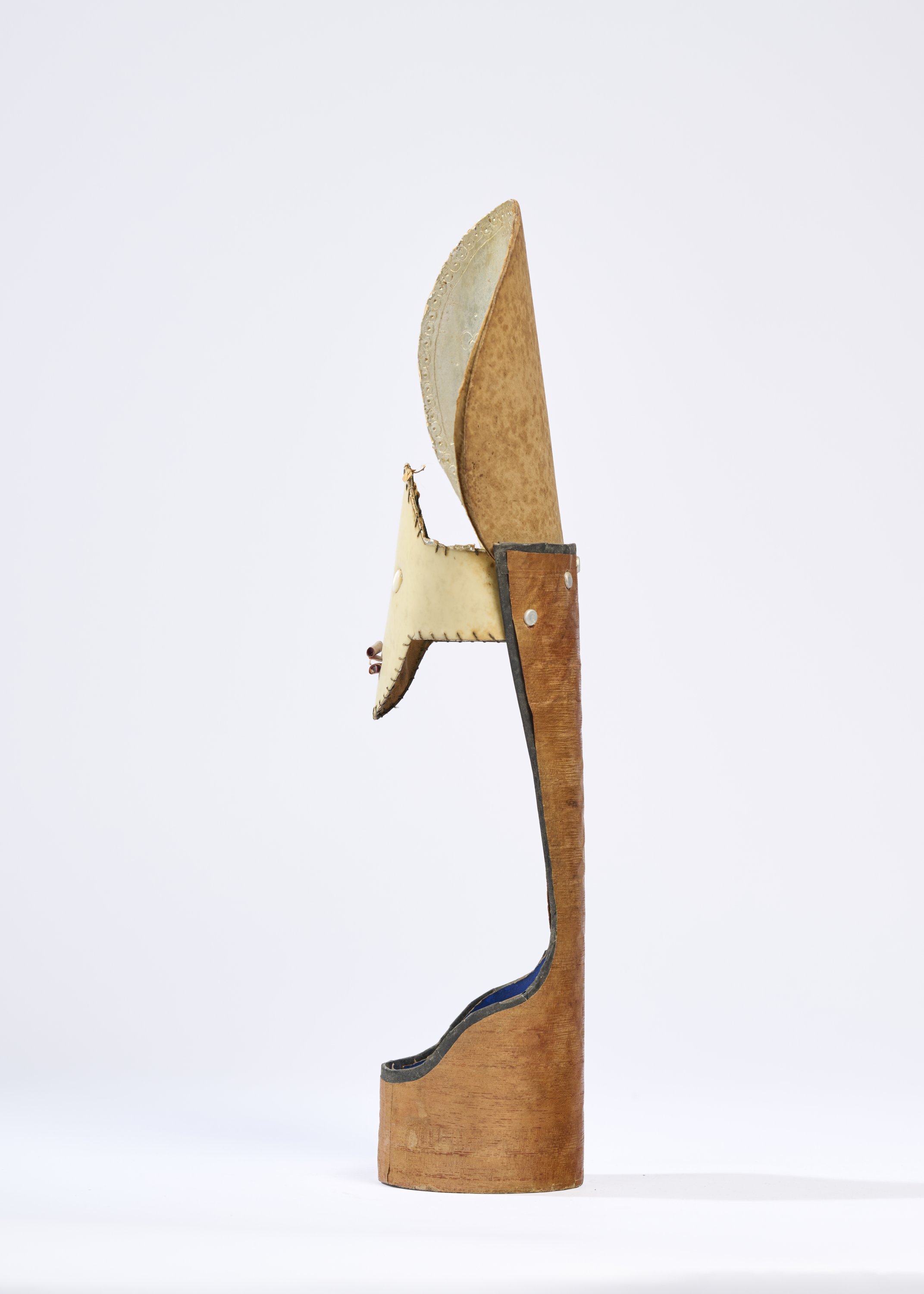 Ecorce de bouleau, cartonnage et papier polychrome, rodoïde et bille de nacre, attaches parisiennes assemblés et incisés.