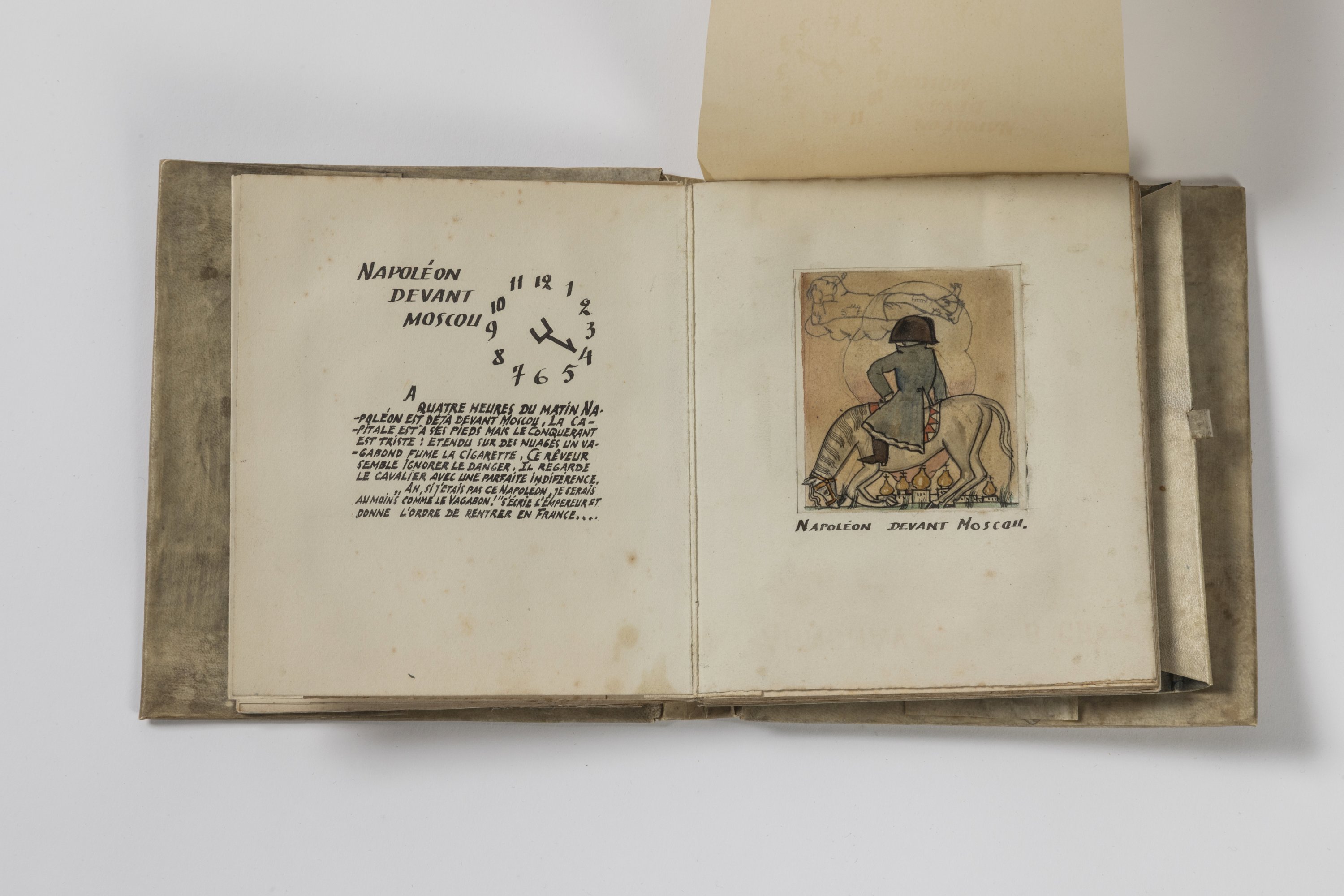 La présence à la fin de l’ouvrage d’un carton prospectus annonçant que les 12 tableaux font partie du programme de lanterne magique projeté au Ciné Latin, suggère que ce manuscrit pouvait servir de maquette pour les plaques de verre projetées (la Vitromagie) ou comme script pour le narrateur pendant la projection.
