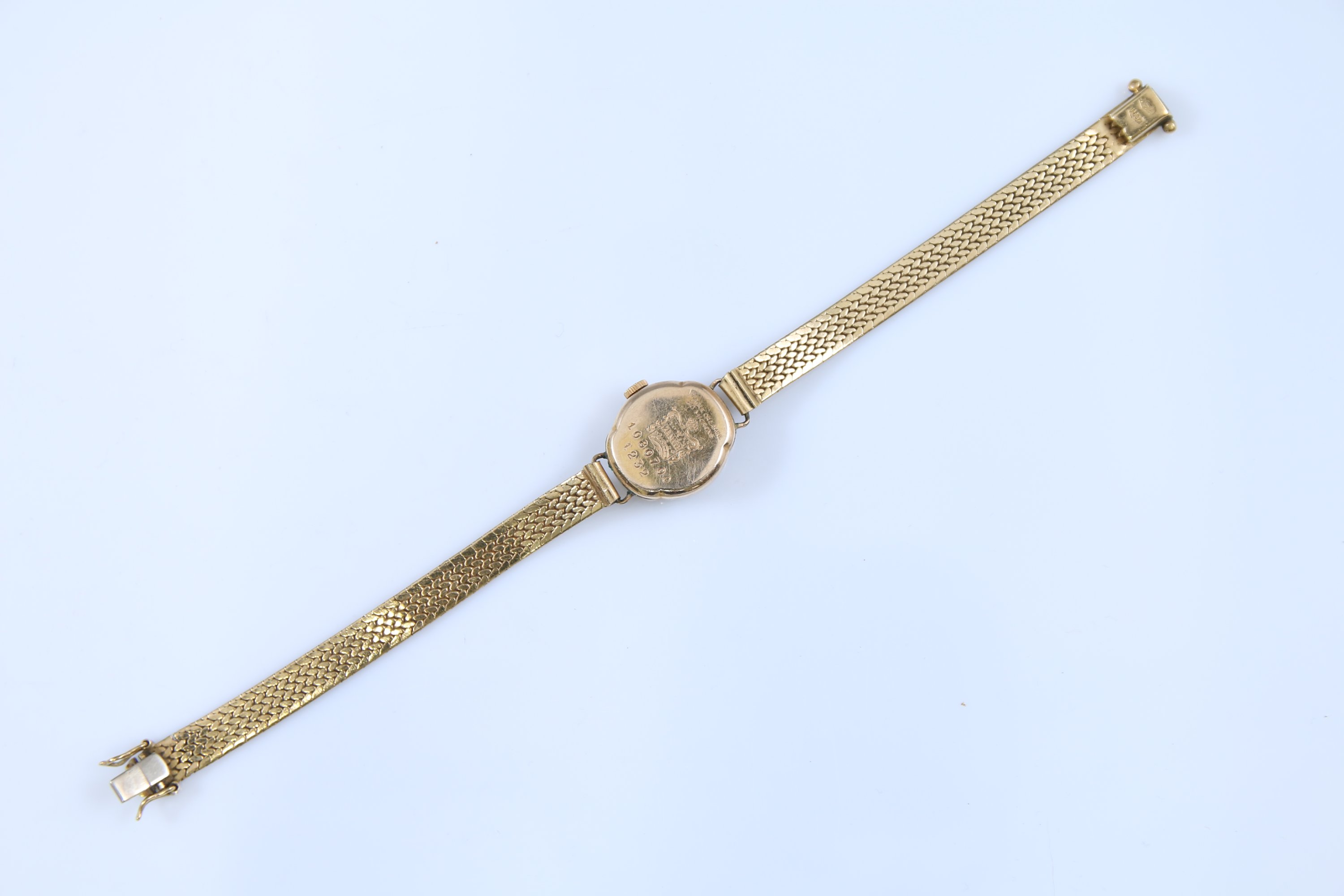 Le boitier circulaire au cadran champagne indiquant les heures en chiffres arabes et bâtonnets. Il est numéroté au revers "1080700 / 1232". Mouvement mécanique. Le bracelet en or jaune 750 millièmes.