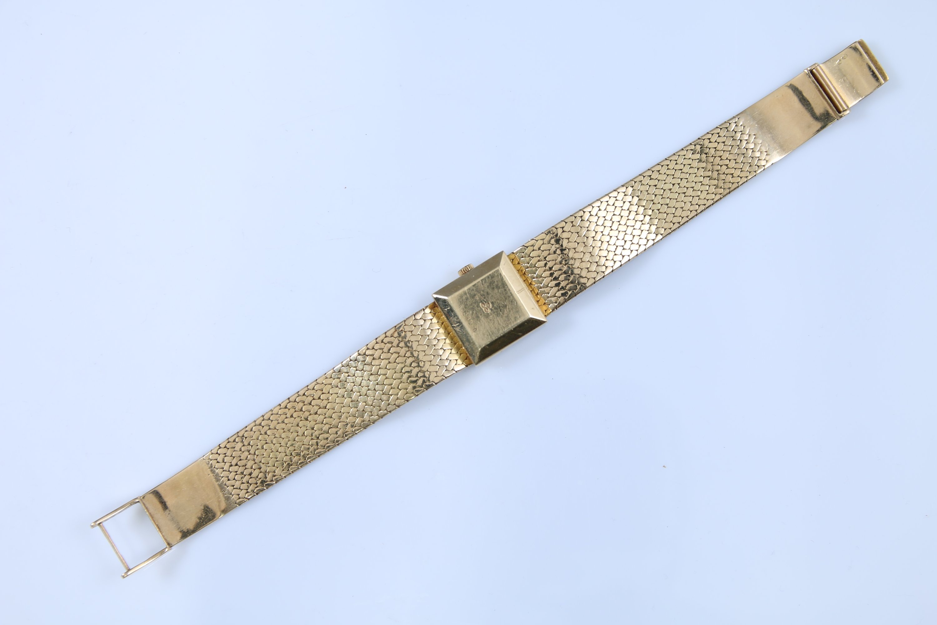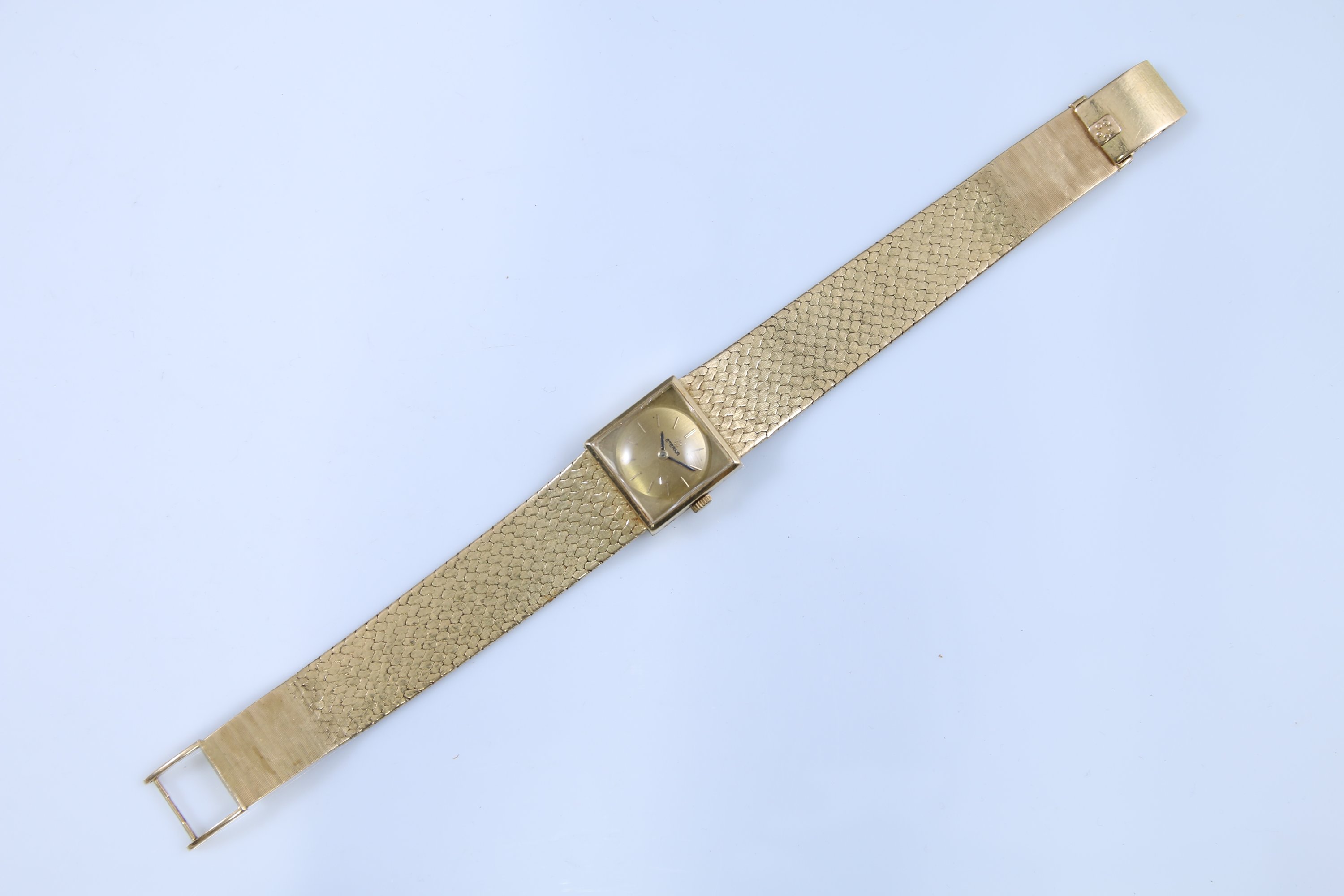 Le boitier carré inscrivant un cadran rond indiquant les heures par des bâtonnets. Signé "Eterna". Numérotée au revers "50288 0".