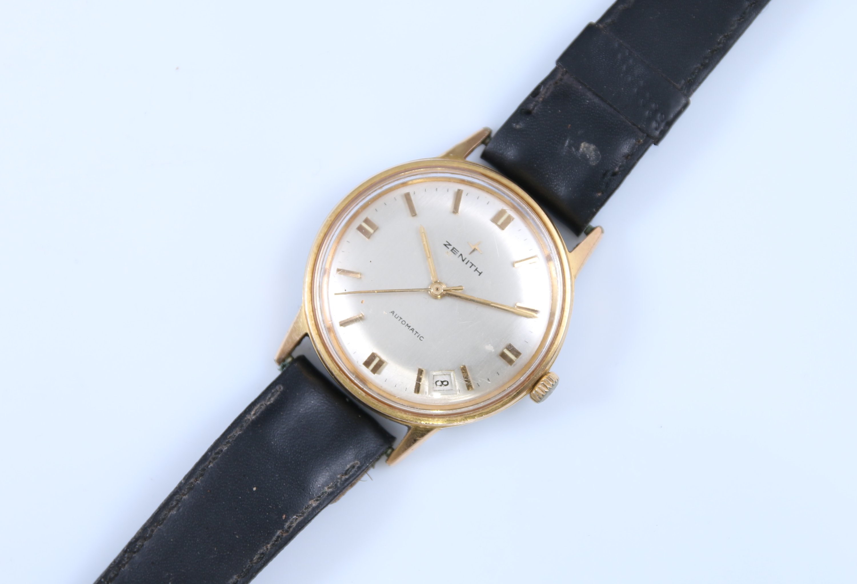 Le cadran argenté indiquant les heures par des bâtonnets. Guichet dateur à 4 heures. Fond numéroté "1090395". Mouvement automatique.