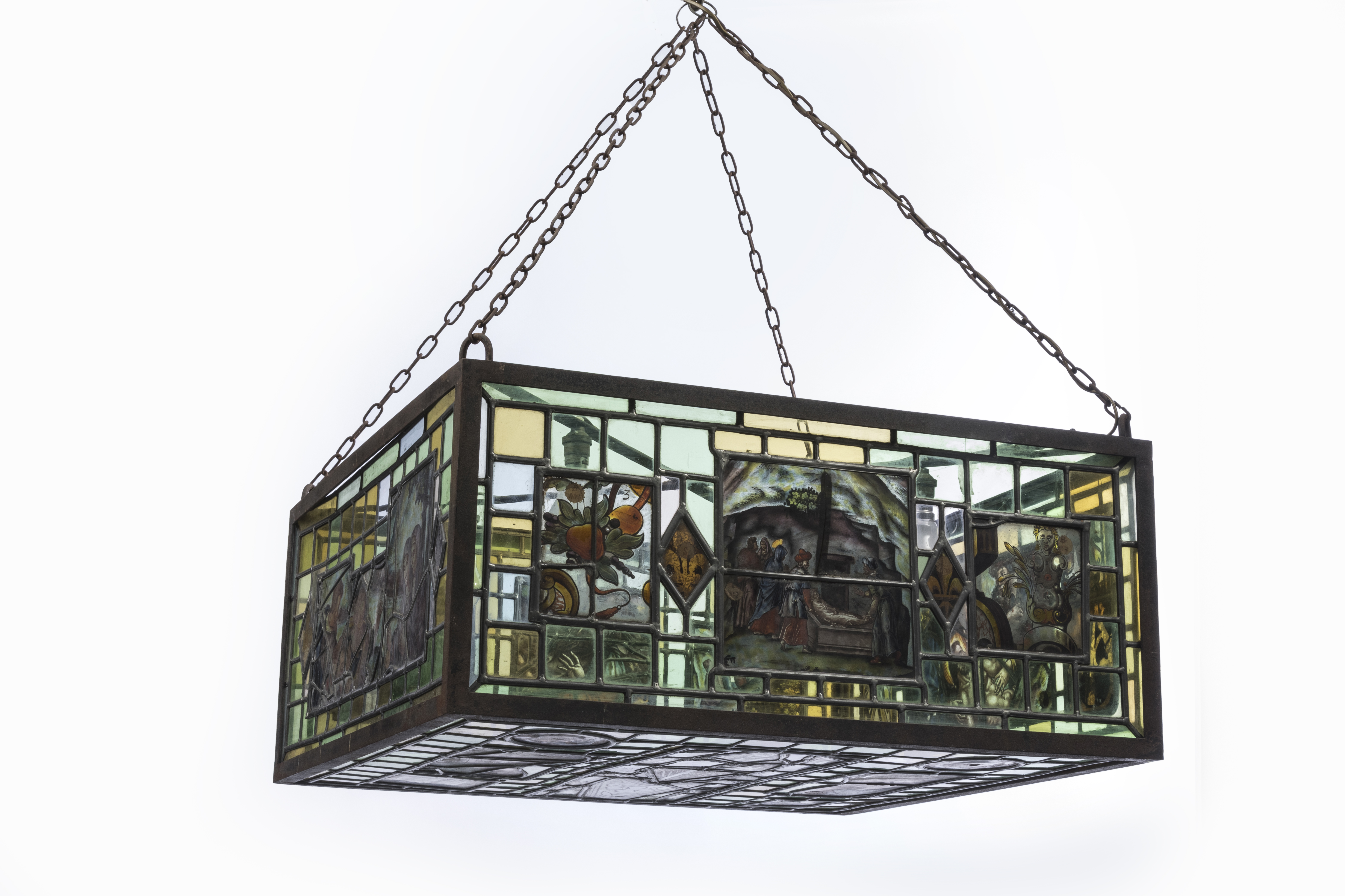 L'entre deux guerres est marqué par un renouveau des styles et des matières dans les arts appliqués, qui culmine avec l'Exposition internationale des arts décoratifs à Paris en 1925, lors de laquelle le maître verrier Louis Barillet s’impose comme le héraut du nouveau style « Art Déco ». Découverts dans un château en Bourgogne, nos cinq lustres, associant travail de verrerie de la première moitié du XXe siècle et fragments de vitraux plus anciens réemployés, proviennent d’un appartement parisien et sont réputés avoir été livrés par l’atelier de Louis Barillet. Le verrier est connu pour ses productions avant-gardistes et ses innovations techniques, inventant le verre blanc ; or ces lustres s’éloignent de sa manière. Cependant, de nombreux vitraux religieux produits par son atelier ont été détruits lors de la Seconde Guerre mondiale et ses archives ont été perdues après sa mort. Sa production reste donc encore à étudier et à répertorier ; il est donc possible qu’un pan entier de ce qu’il a réalisé nous soit inconnu.
