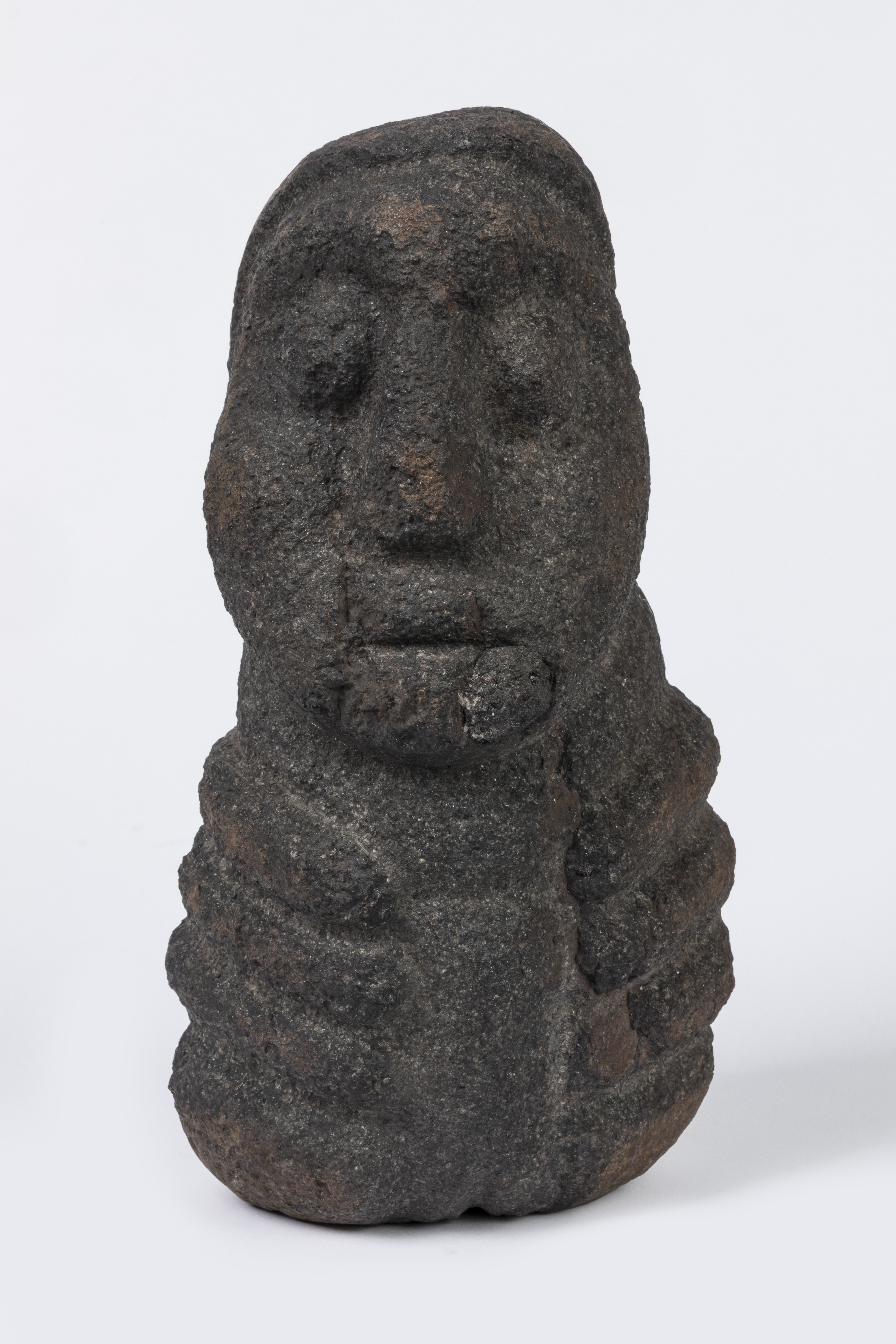 Pierre volcanique sculptée.Haut. 45 et 31 cm.