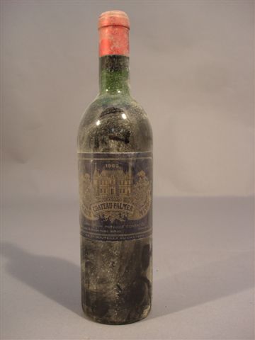 CHÂTEAU PALMER. 3ème Grand Cru classé Margaux, 1962. 1 bouteille moyennement basse. Étiquette sale.